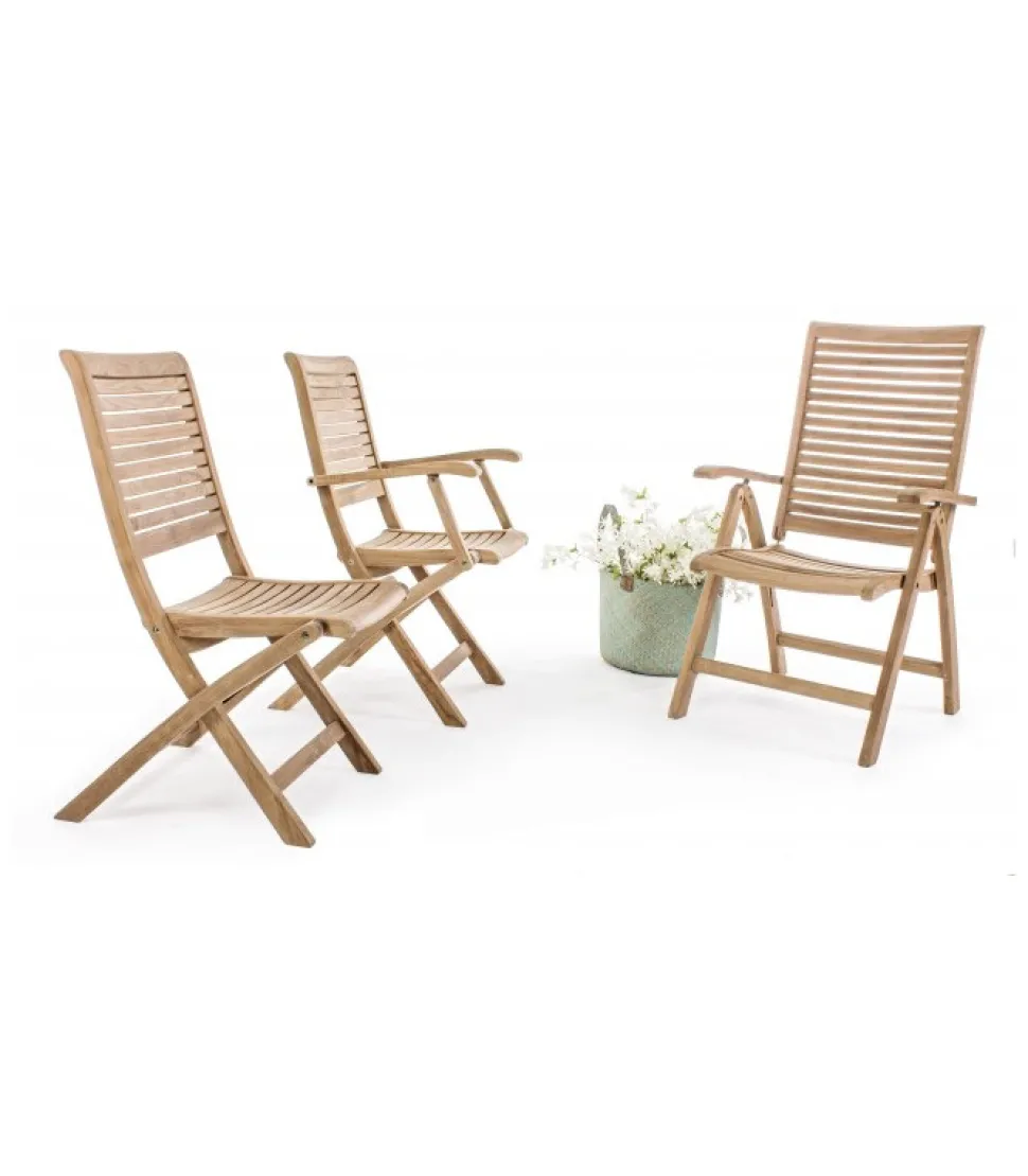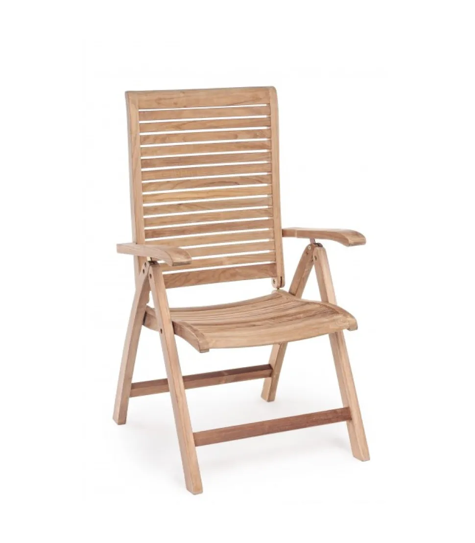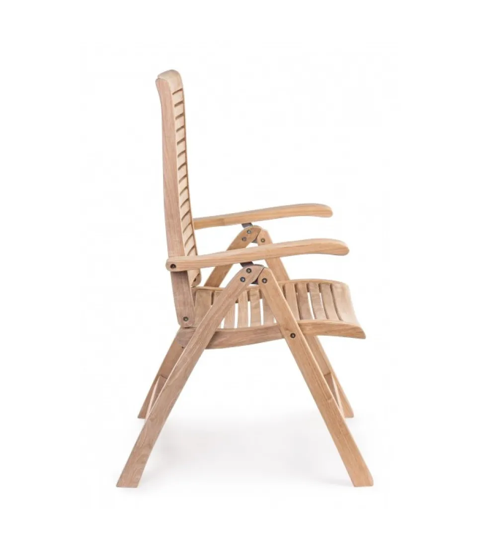 Poltrona Reclinabile Maryland – Legno Teak (Classe A) – Svlk (Legno Certificato Proveniente Da Foreste Sostenibili), Produzione Meccanica. Ferramenta In Acciaio Galvanizzato. Schienale Reclinabile (5 Posizioni). Pieghevole. – Dimensioni In Cm. 61.5 (L.) 64 (P.) 109 ( H.) 45 ( H1) – 67 ( H2)