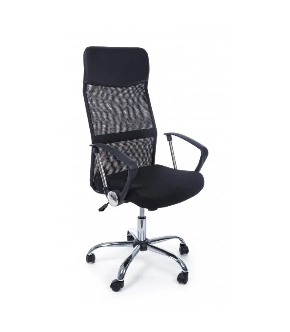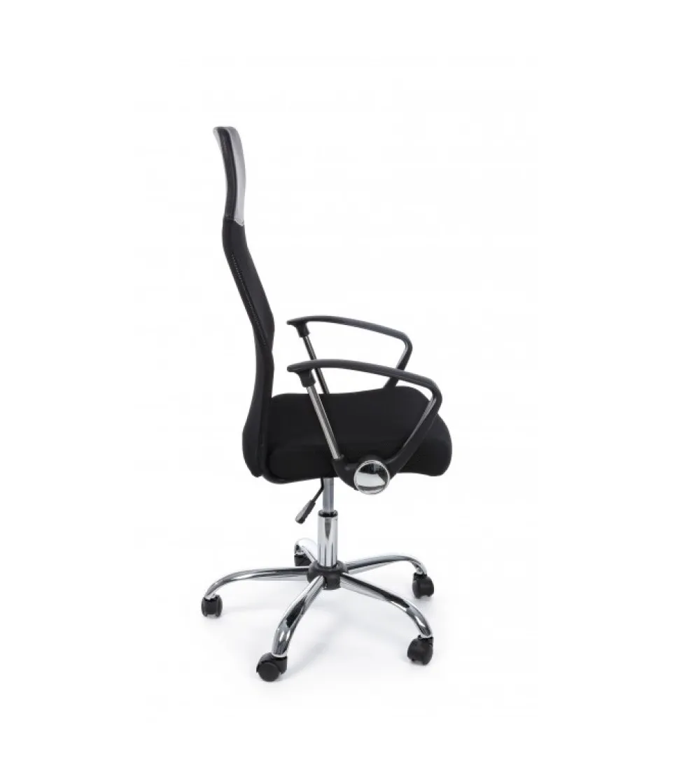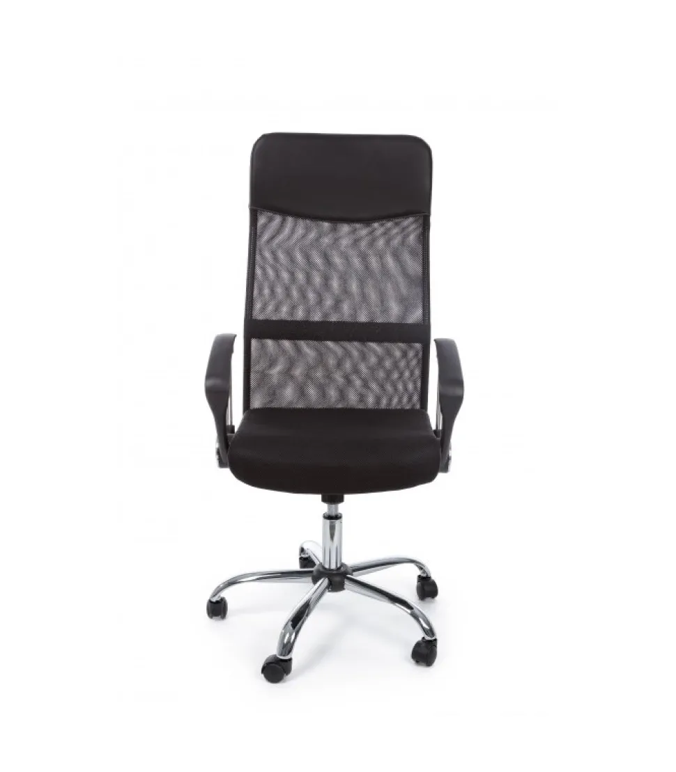 Poltrona Ufficio C-Br Dakar Nerobase In Acciaio Cromato O60Cm- Ruote In Nylon- Seduta Imbottita E Rivestita In Tessuto 100% Poliestere E Tessuto A Rete Con Inserto In Similpelle- Braccioli In Plastica (Pp)E Acciaio Cromato- Altezza Regolabile- Da Assemblare.Dimensioni:48(L) – 49(P) – 114/124(H) – 47/57(H. Seduta) – 66/76(H. Braccioli)