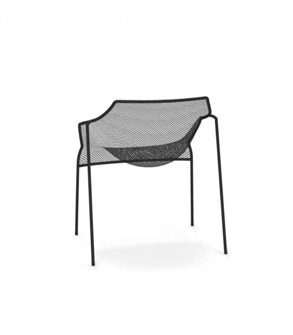 Poltroncina Con Struttura In Acciaio Verniciato, La Seduta E Lo Schienale Sono In Rete Di Acciaio Intrecciata, Pre Zincata A Caldo E Verniciata. E Accessoriabile Di Cuscino Per La Seduta E Per Lo Schienale, Disponibile In Diversi Colori.