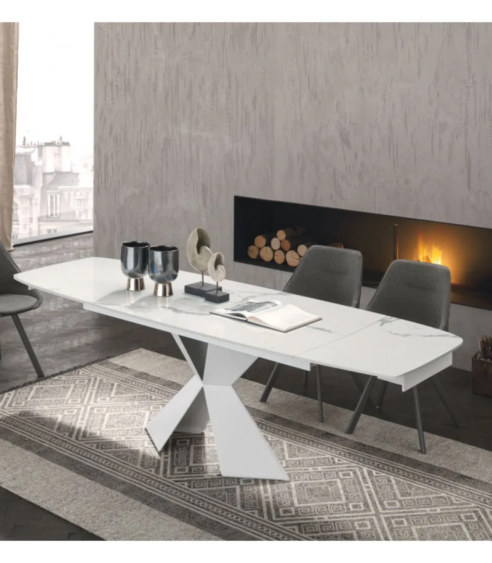 Poseidone 120 / 160, E Un Tavolo Allungabile Con Il Piano E Le Allunghe Laterali In Gres Porcellanato O Vetro Temperato. La Struttura E Di Metallo Verniciato O Spazzolato. Poseidone Gode Di Un Design All’Avanguardia Ed Uno Stile Innovativo. E Adatto Alla Living Zone Ed Alla Sala Da Pranzo.