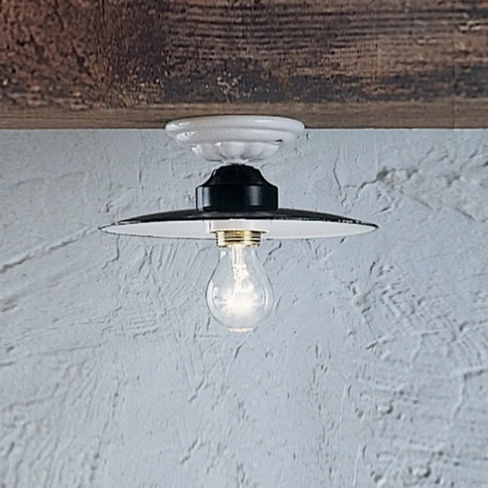 Lampada Sospesa Dundee, Prodotta In Italia Da Ferroluce, In Ceramica Con Colori Anticati Vintage.