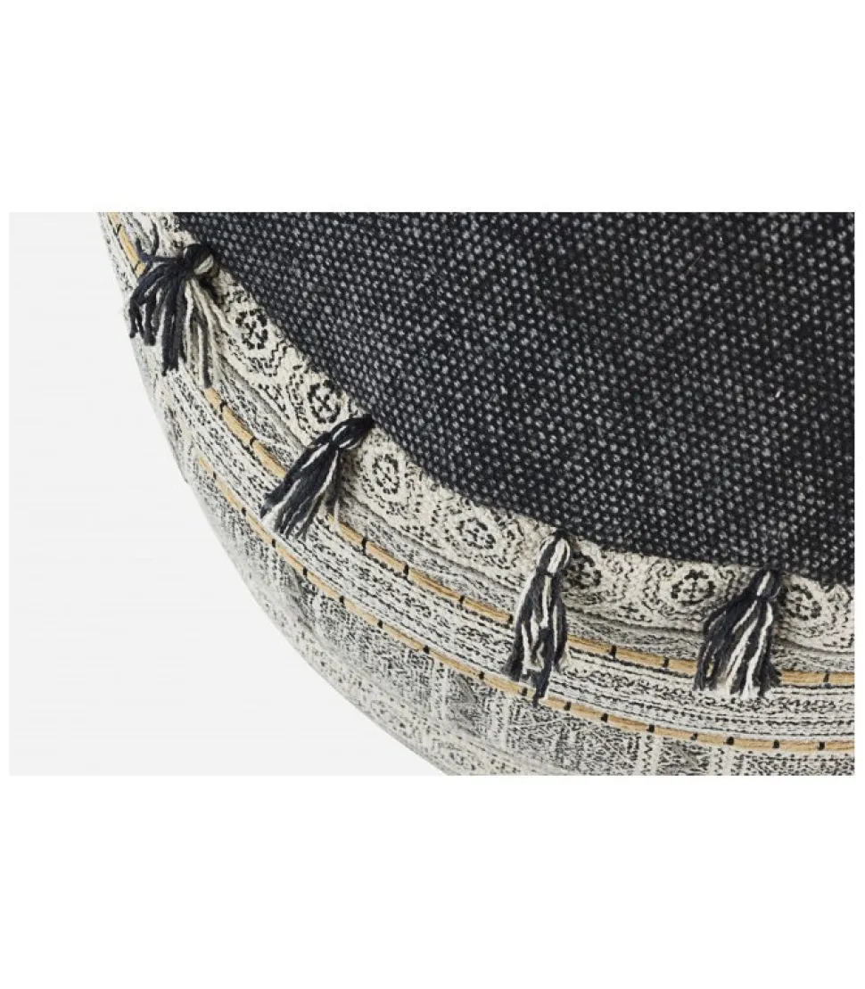 Pouf Tilak Alaskan D50Rivestimento In Cotone Lavorato E Ricamato A Mano, Imbottitura Con Palline Di Polistirolo.Dimensioni:O50(L) – 35(H)