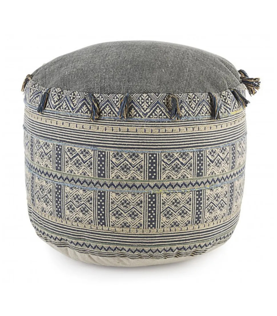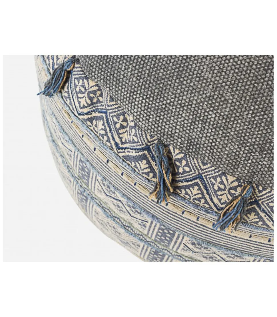 Pouf Tilak Snorkel D50Rivestimento In Cotone Lavorato E Ricamato A Mano, Imbottitura Con Palline Di Polistirolo.Dimensioni:O50(L) – 35(H)
