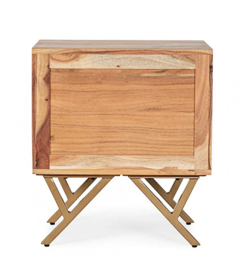 Comodino 2C Raida Struttura In Legno Di Acacia, Schienali Ed Interno Cassetti In Compensato, Finitura A Base Di Vernice Poliuretanica. Gambe In Acciaio Verniciato A Polvere Epossidica. Gambe Da Assemblare. – Dimensioni In Cm. 50 (L.) 35 (P.) 55 H