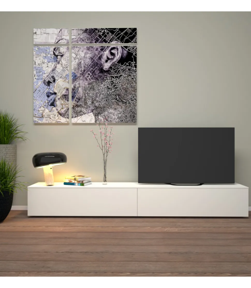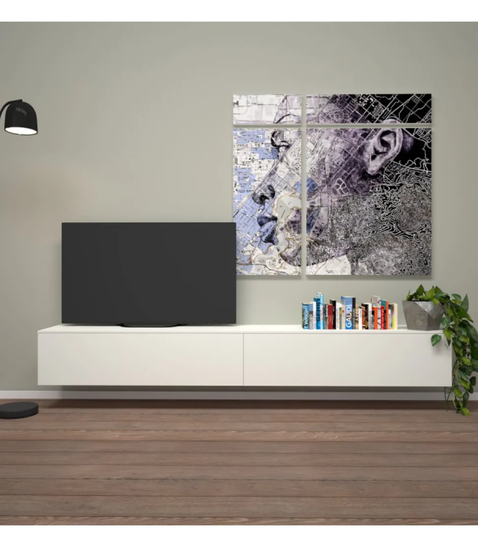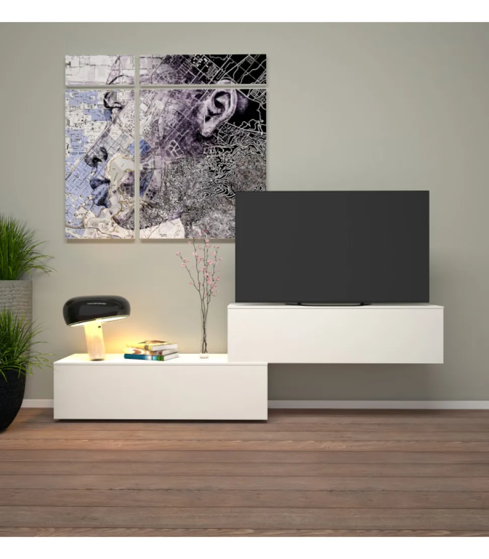 Composizione Dal Design Lineare, Composta Da Due Elementi A Ribalta Di Colore Bianco.