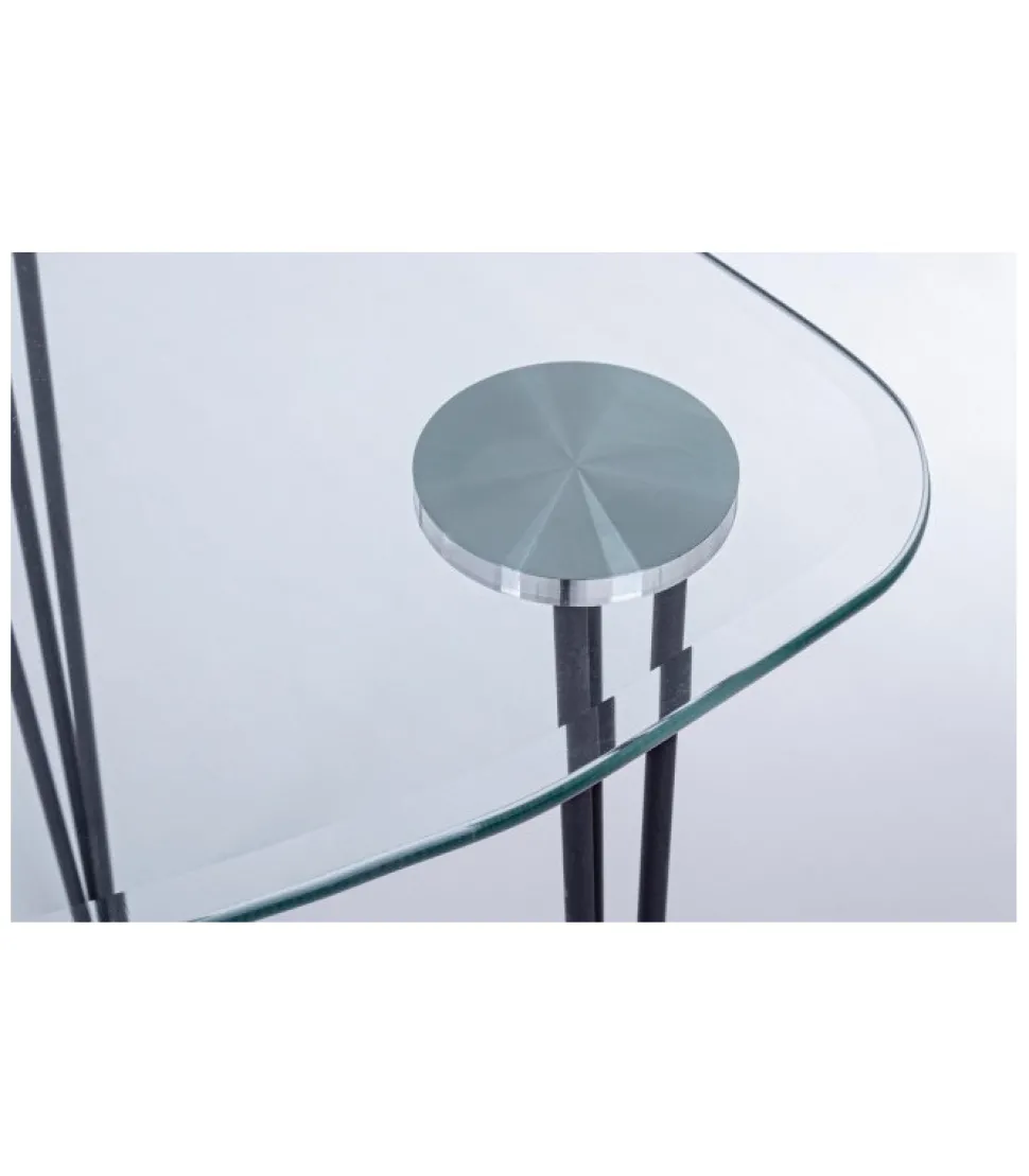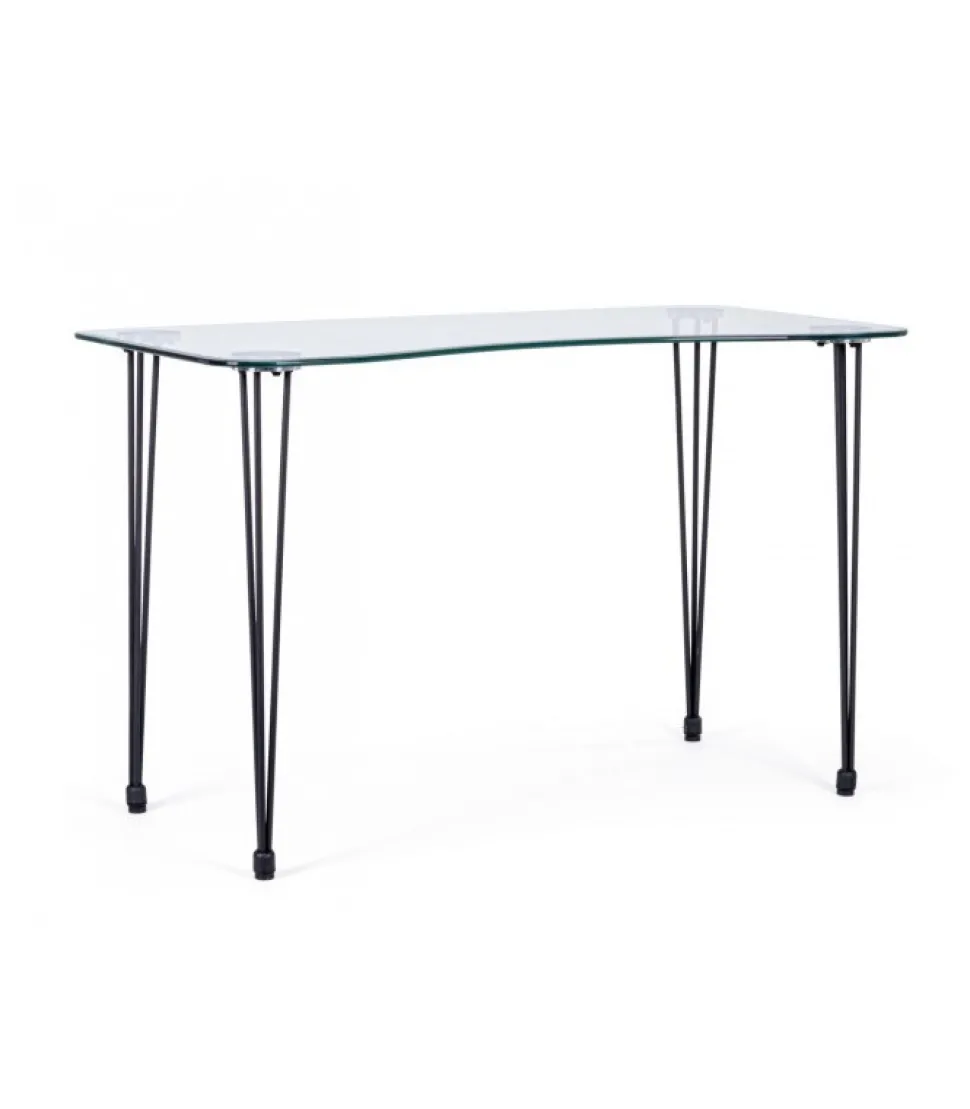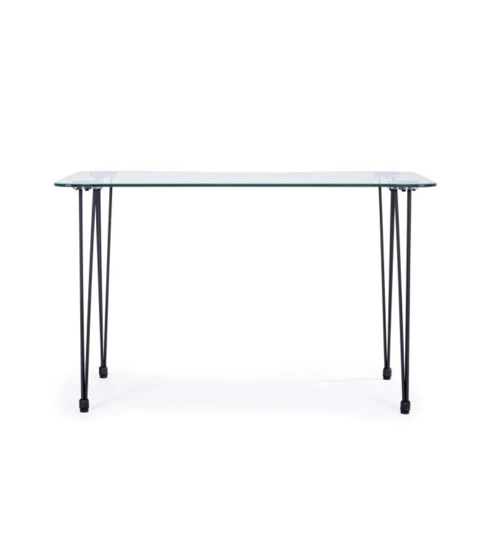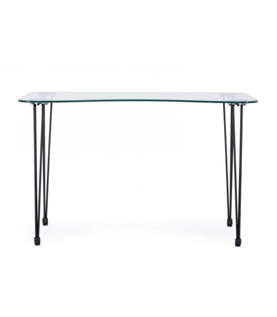 Scrivania Rondo’ Nero 120X60 Gambe In Acciaio Verniciato A Polvere. Piano In Vetro Temperato Spessore 10Mm. Da Assemblare. – Dimensioni In Cm. 120 (L.) 60 (P.) 74 H