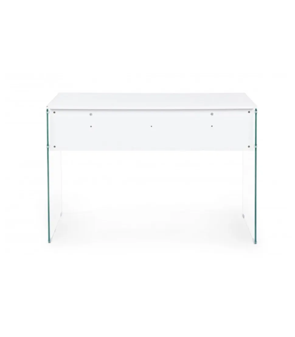Scrivania 1C Armos Biancogambe In Vetro Temperatospessore 10Mm- Piano In Mdf Rivestito In Pvc Effetto Legno- Da Assemblare.Dimensioni:110(L) – 55(P) – 76(H)