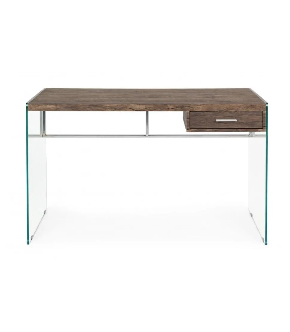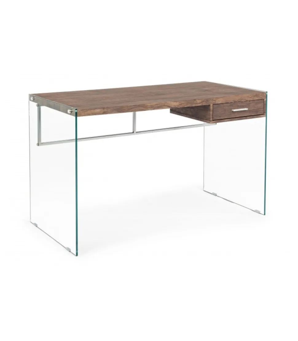 Scrivania 1C Suami Rovere Brown 122X60Struttura In Acciaio Cromato- Gambe In Vetro Temperato, Spessore 10Mm- Piano In Mdf Rivestito In Pvc 3D Effetto Legno- Da Assemblare.Dimensioni:122(L) – 60(P) – 76(H)