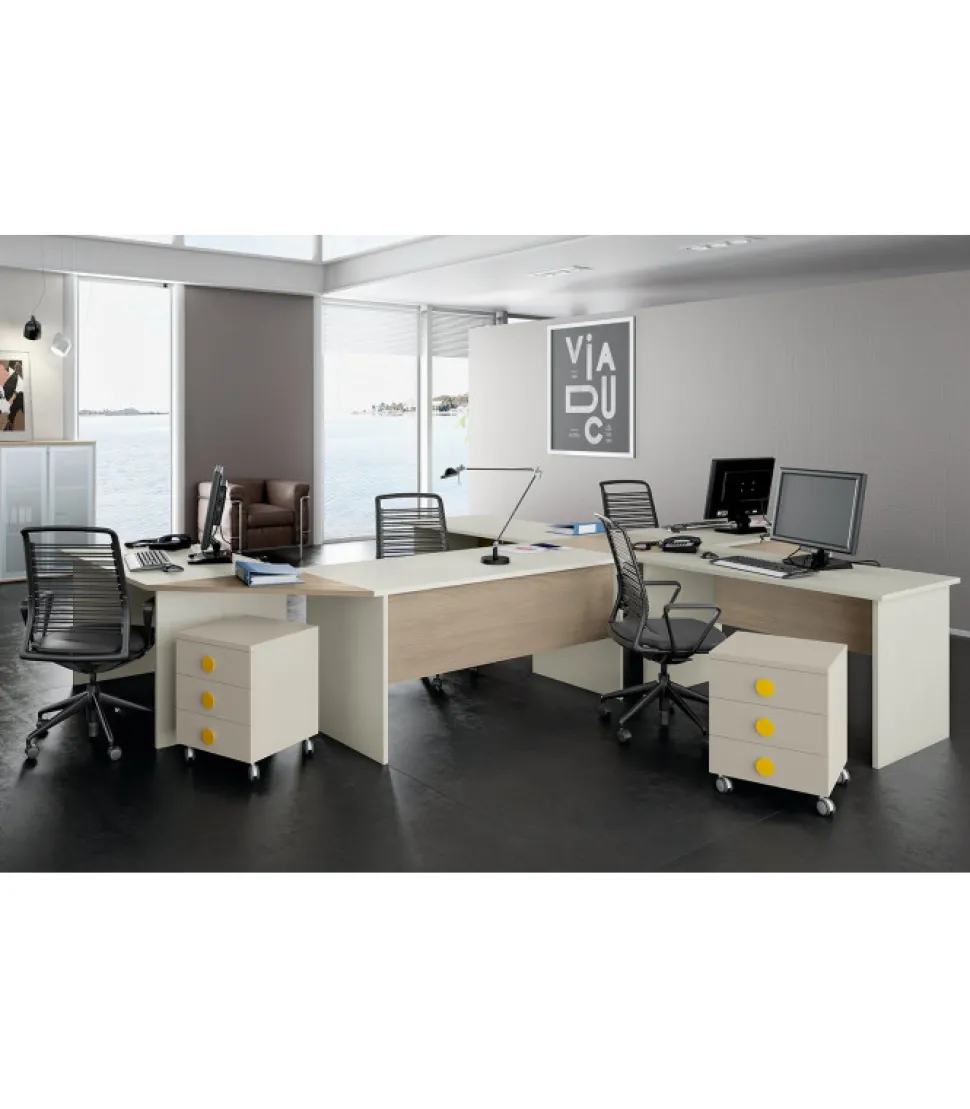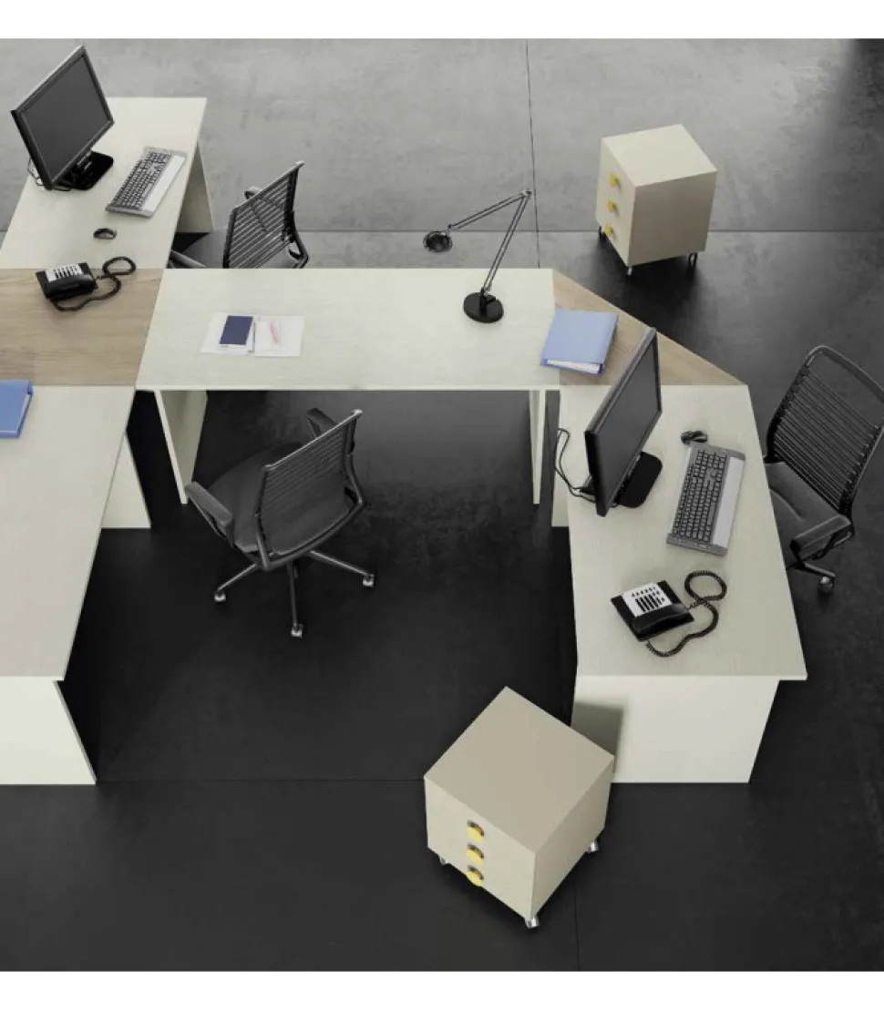 Scrivania Da Ufficio Da Cinque Posti Con La Possibilita Di Includere Due Cassettiere Con Ruote. Le Sedie Non Sono Incluse.