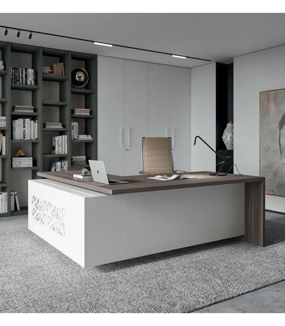 La Versione Direzionale E Disponibile Con Un Dattilo Integrato, Che Crea Una Forma A L, Pratico Per Lavorare E Per Accogliere Partner E Clienti. Piano E Struttura Sono Personalizzabili Per Esprimere Ogni Gusto, Classico O Moderno. Per Favorire Incontri Piacevoli, All’Insegna Della Coerenza Stilistica, La Collezione Include Tavoli Da Riunione In Melaminico E Metallo.