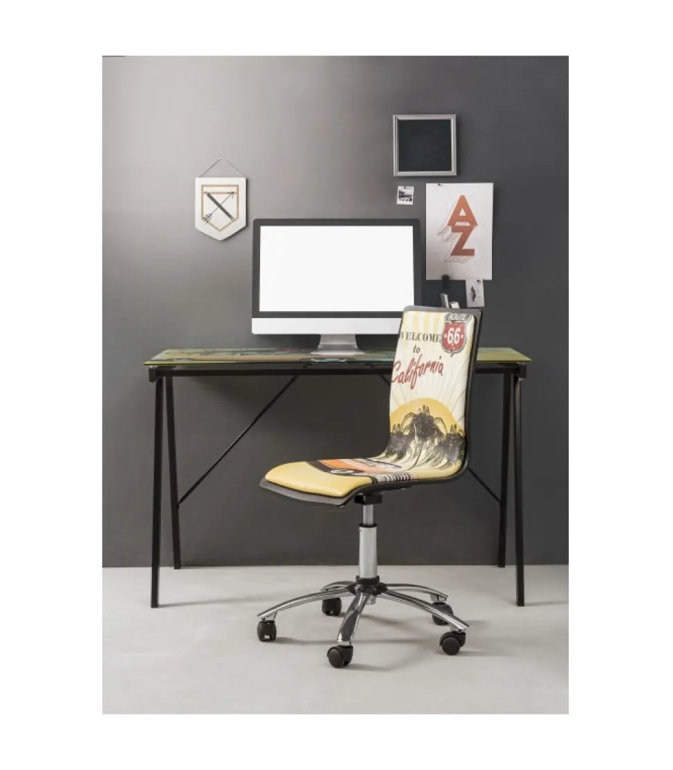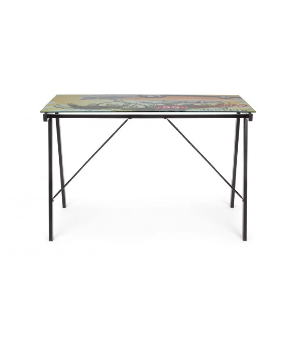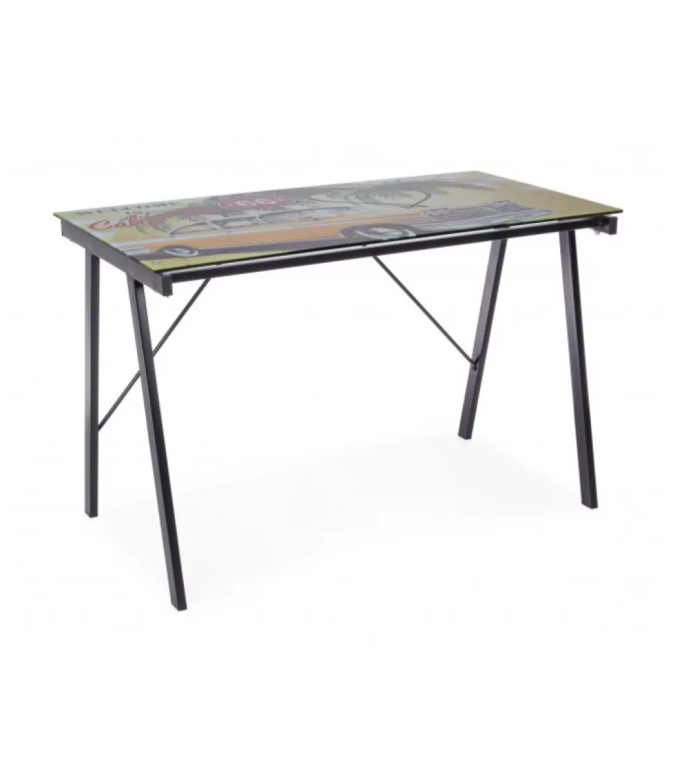 Scrivania Young California 113X58Struttura In Acciaio Verniciato A Polvere Opaca- Piano In Vetro Temperato Spessore 7Mm Con Stampa- Da Assemblare.Dimensioni:113(L) – 58(P) – 73(H)