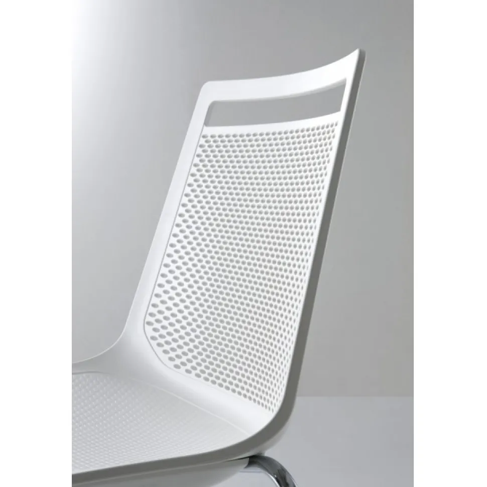 La Particolare Foratura Dello Schienale , Realizzata Con 1034 Fori Elittici, Consente Una Corretta Traspirazione E Un Benessere Generale Dell’Utente, Anche Per Un Uso Prolungato. La Maniglia Integrata Nel Disegno Della Scocca E Ottimale Per Una Semplice Trasportabilita.