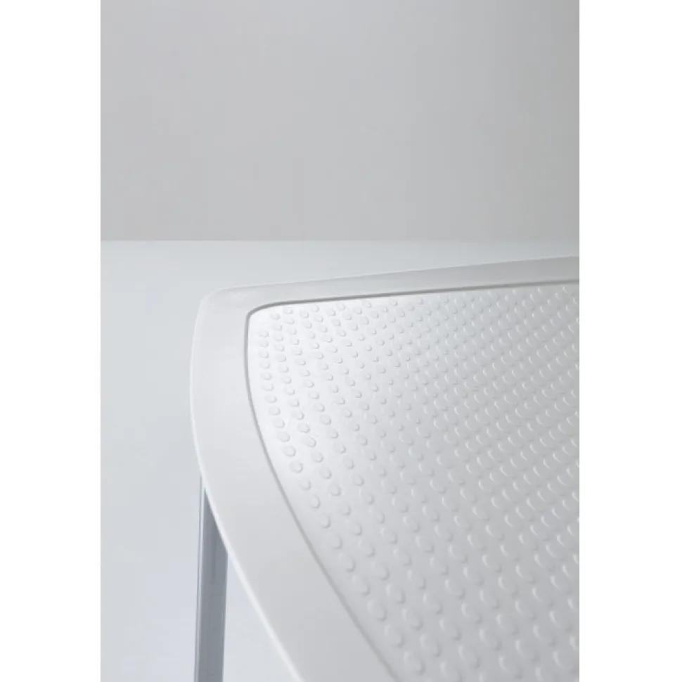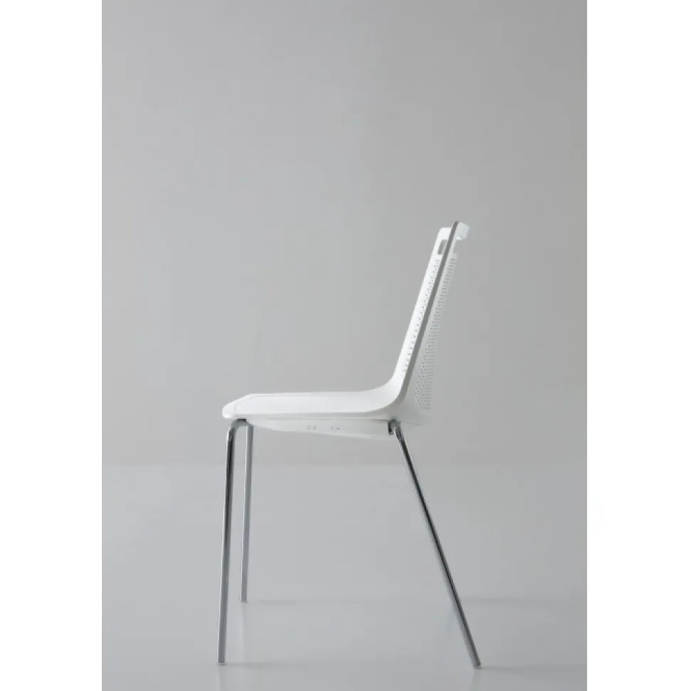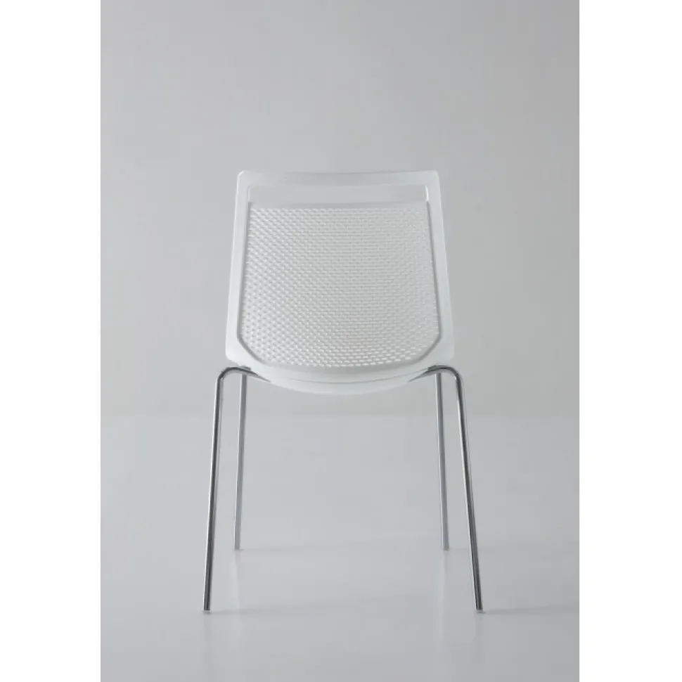 La Scocca Realizzata In Tecnopolimero Ha Un’Ampia Scelta Di Colori E La Struttura In Metallo 4 Gambe Puo Essere Cromata O Verniciata Bianca.