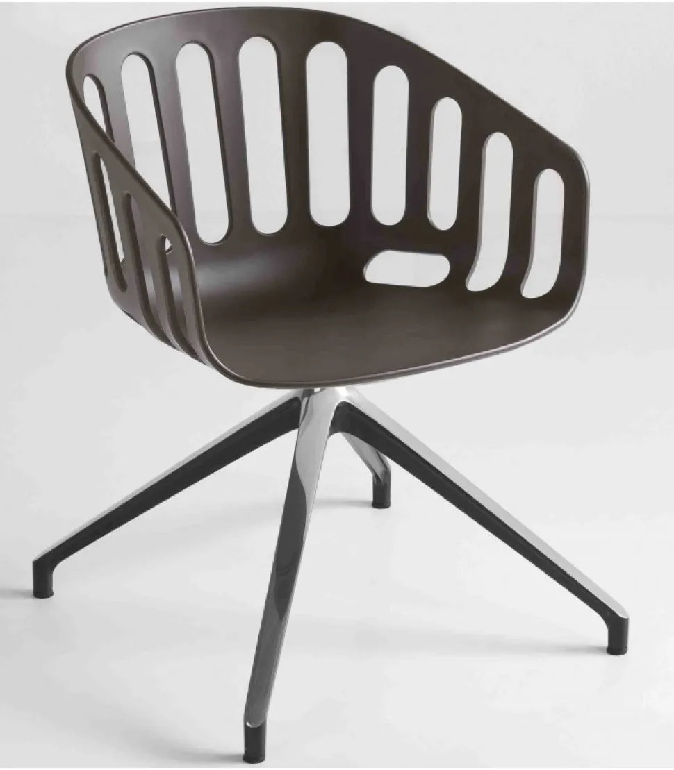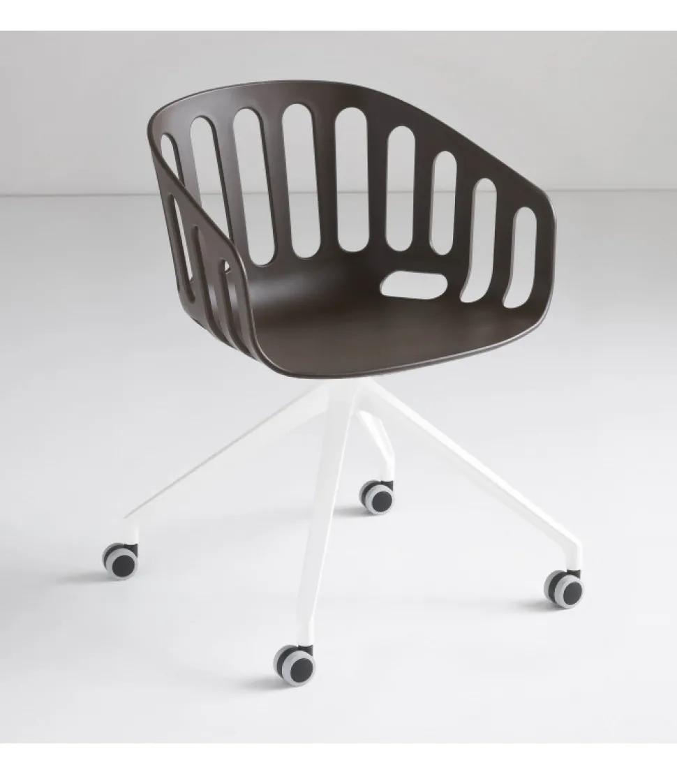 Sedia Basket U Con Seduta Girevole In Tecnopolimero, Appoggiata Su Basamento In Alluminio Verniciato. Disponibile Con Appoggio Su Piedini O Su Ruote.
