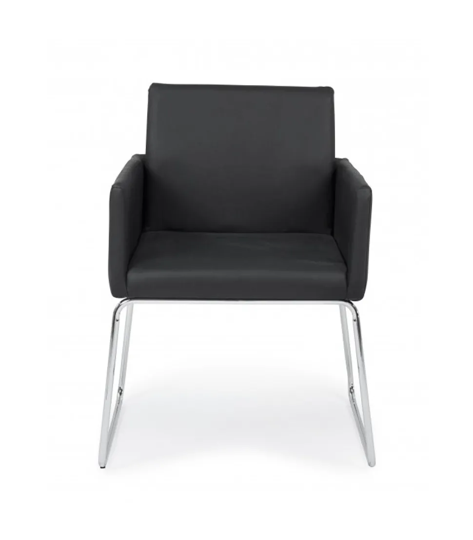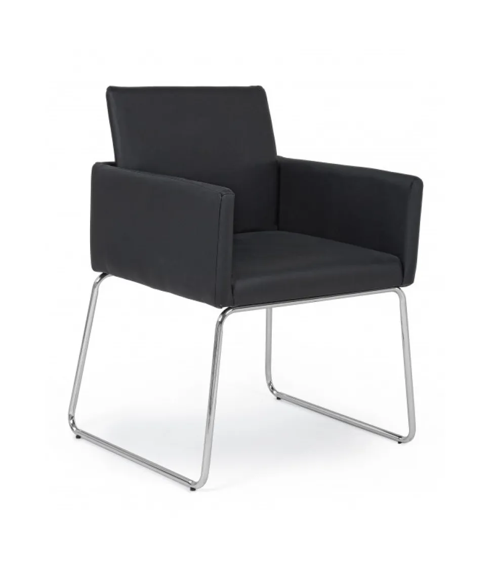 Sedia C-Br Sixty Pu Nerostruttura In Acciaio E Compensato- Imbottitura In Spugna- Rivestimento In Similpelle- Gambe In Acciaio Cromato- Gambe Da Assemblare.Dimensioni:60(L) – 54(P) – 80,5(H) – 48(H. Seduta) – 65(H. Braccioli)