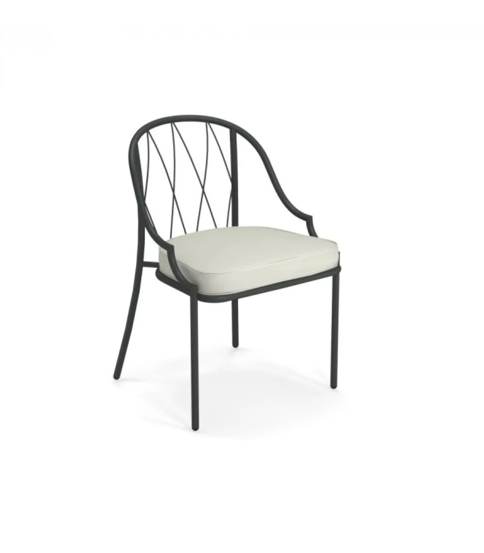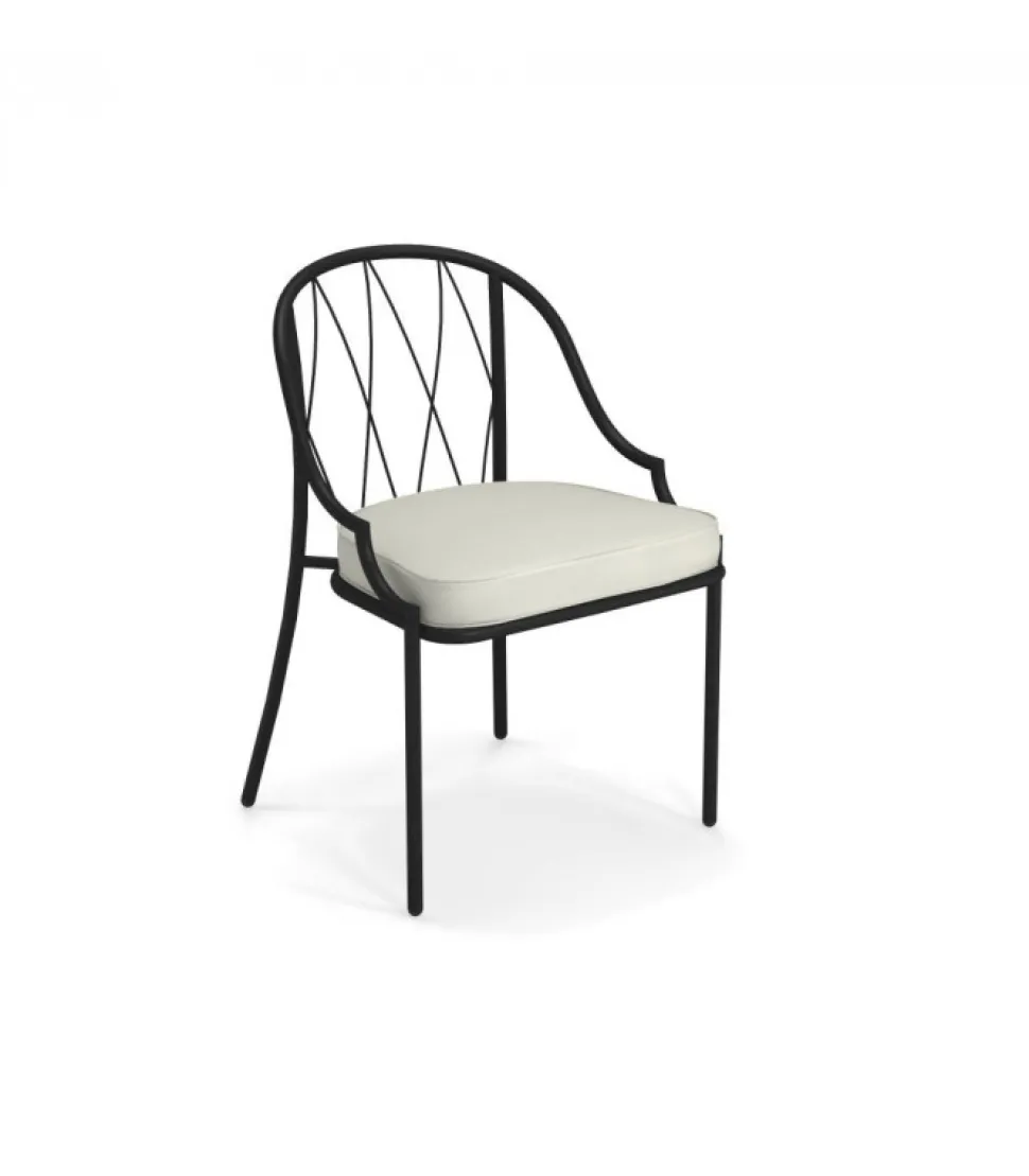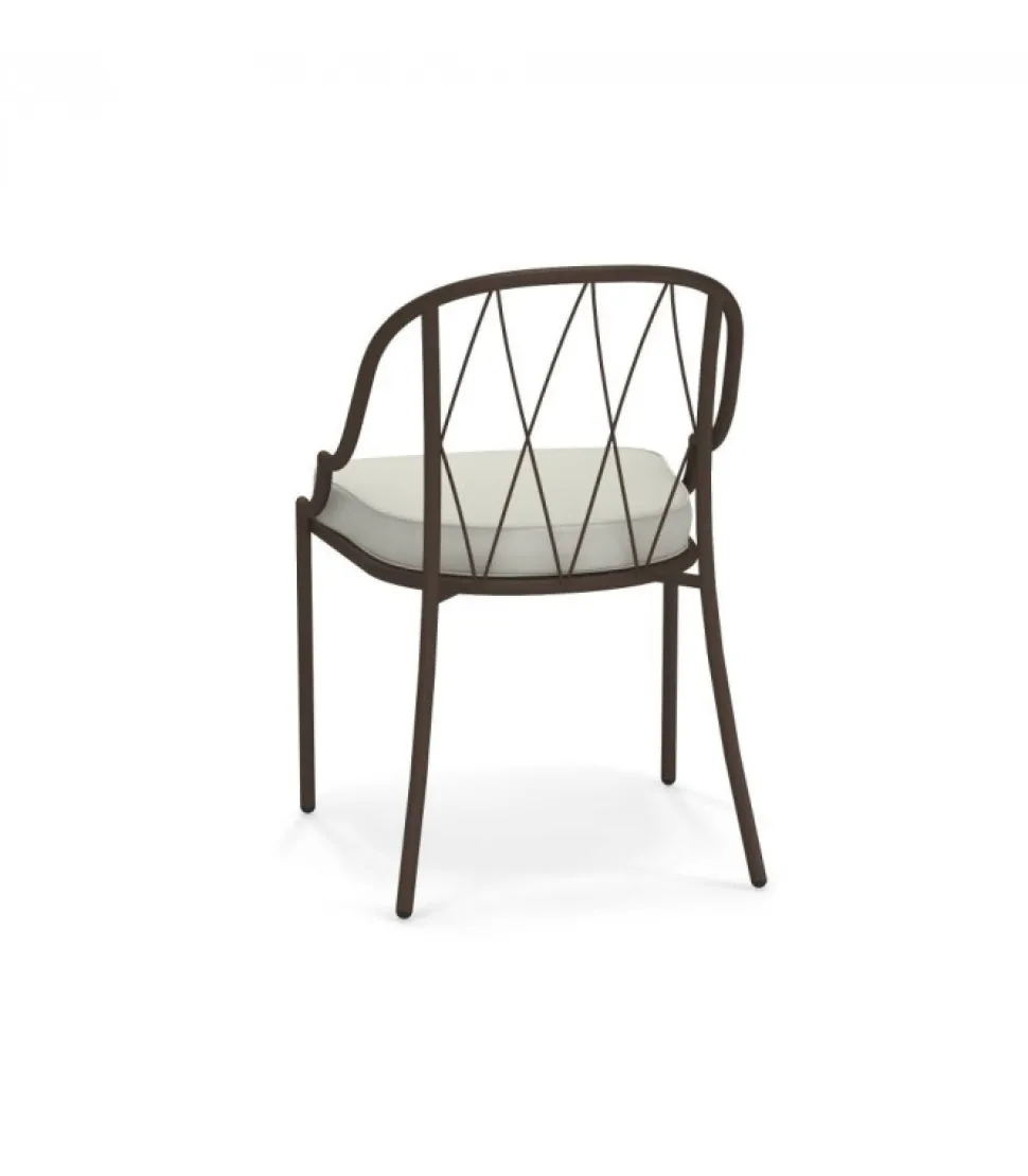 Sedia Con Struttura In Acciaio Verniciato, La Seduta E In Lamiera Stirata Pre Zincata A Caldo E Verniciata, Lo Schienale E In Acciaio A Tondini Pre Zincato A Caldo. E Accessoriabile Di Cuscino Per La Seduta, Disponibile In Molti Tessuti E Molti Colori.