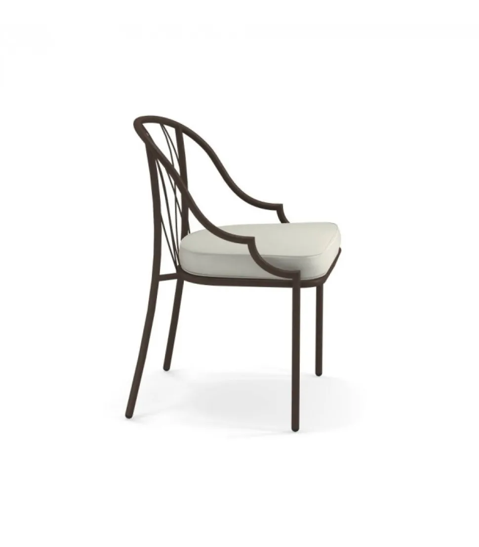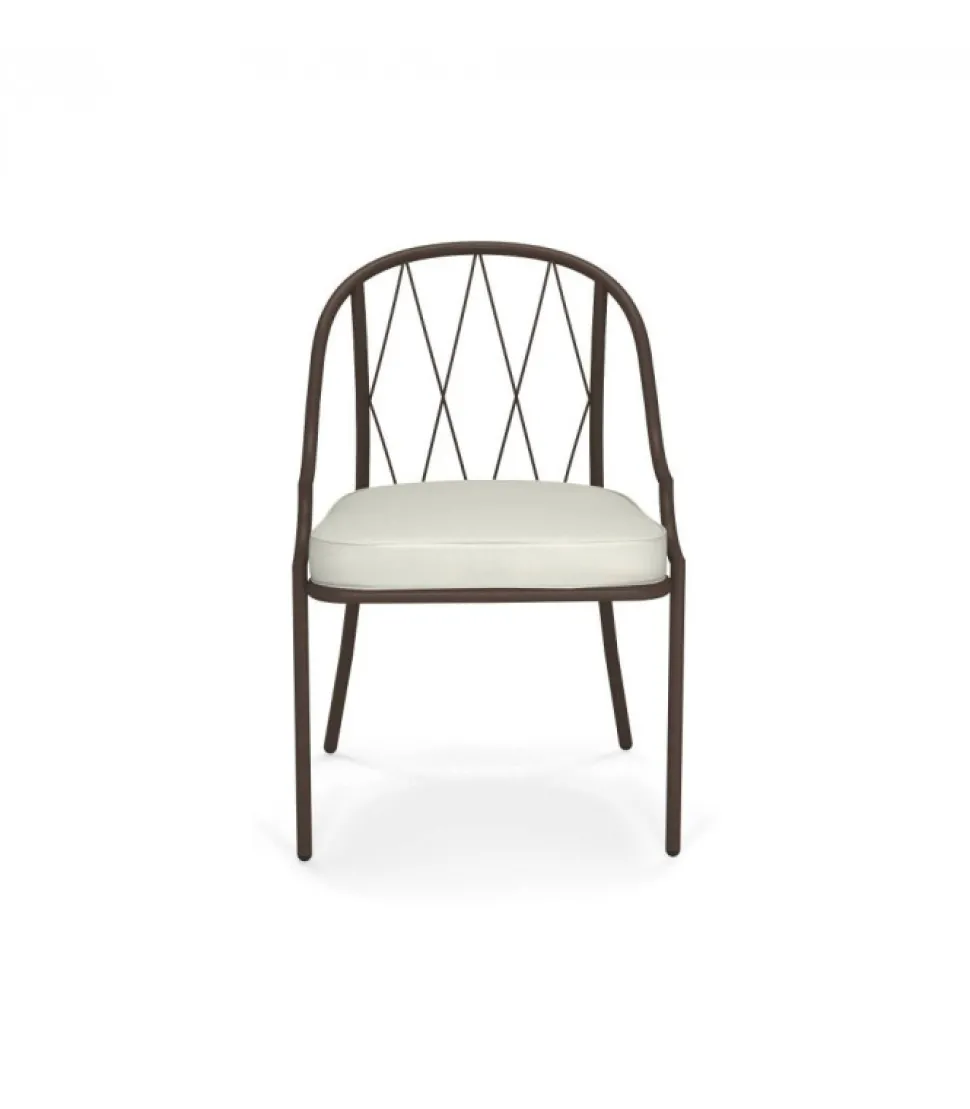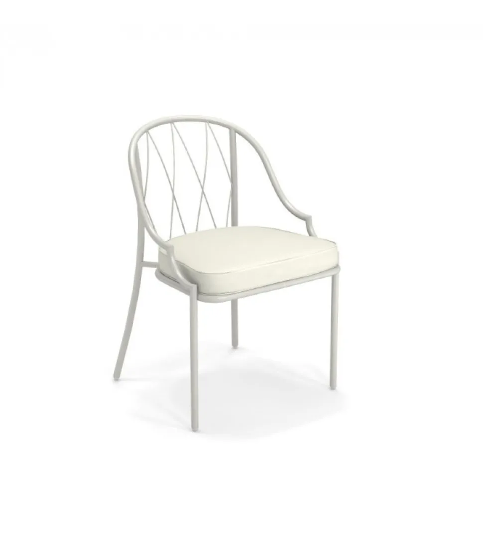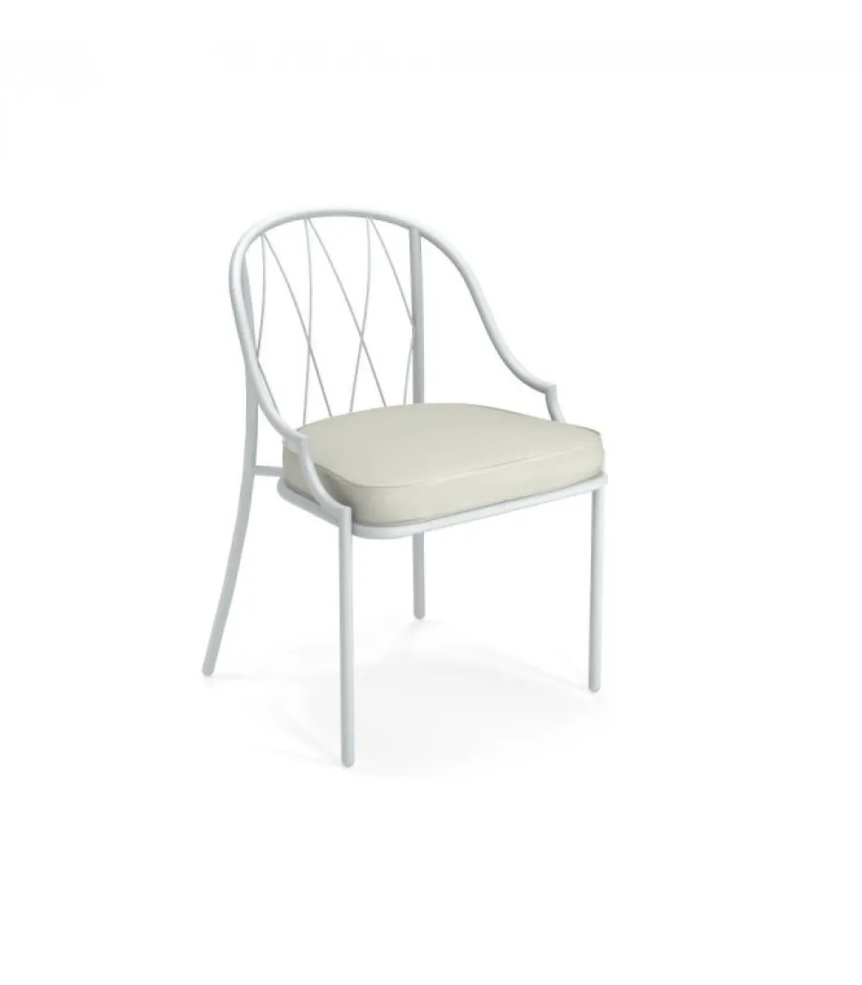 Sedia Con Struttura In Acciaio Verniciato, La Seduta E In Lamiera Stirata Pre Zincata A Caldo E Verniciata, Lo Schienale E In Acciaio A Tondini Pre Zincato A Caldo. E Accessoriabile Di Cuscino Per La Seduta, Disponibile In Molti Tessuti E Molti Colori.