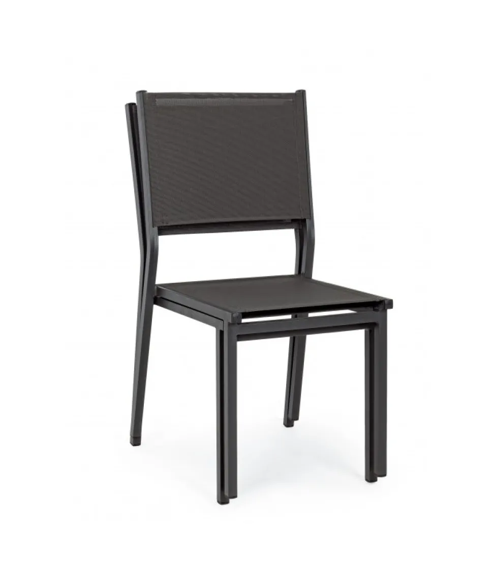 Struttura In Alluminio, Verniciato A Polvere (Poliestere). Barra Supporto Schienale In Acciaio. Seduta E Schienale In Textilene 2X1. Viteria In Acciaio Galvanizzato. Impilabile.