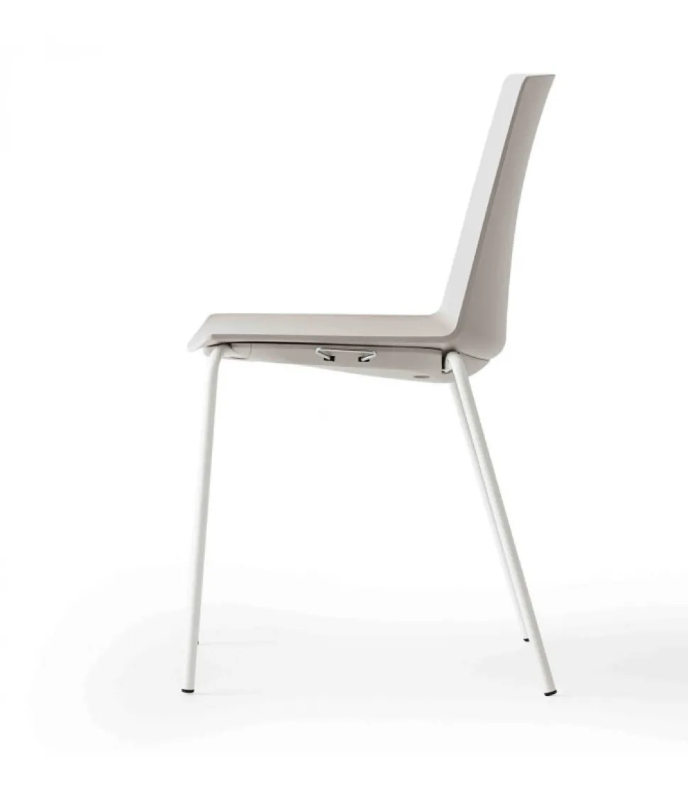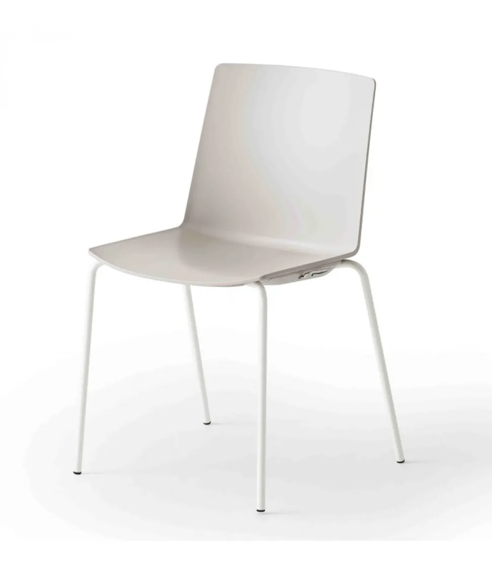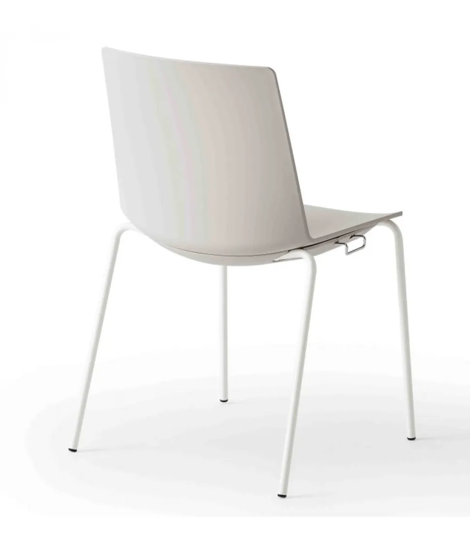 Sedia Jubel Disponibile Con O Senza Braccioli. La Struttura A 4 Gambe E In Metallo Cromato O Verniciato (Di Bianco O Di Nero), La Scocca E In Tecnopolimero (Disponibile In 6 Colori).