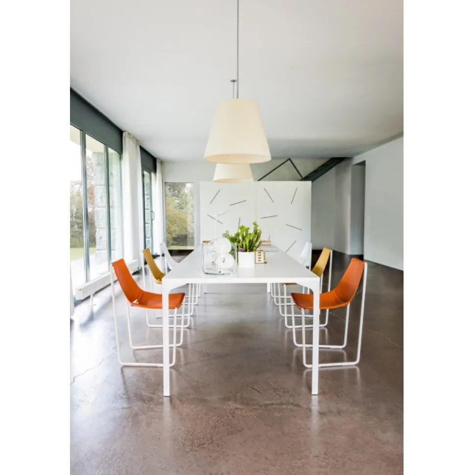 Seduta In Vero Cuoio Sapientemente Cucita E Fissata Alla Struttura In Acciaio Bianco, Cromato, Nichel Nero O Oro Rosa.