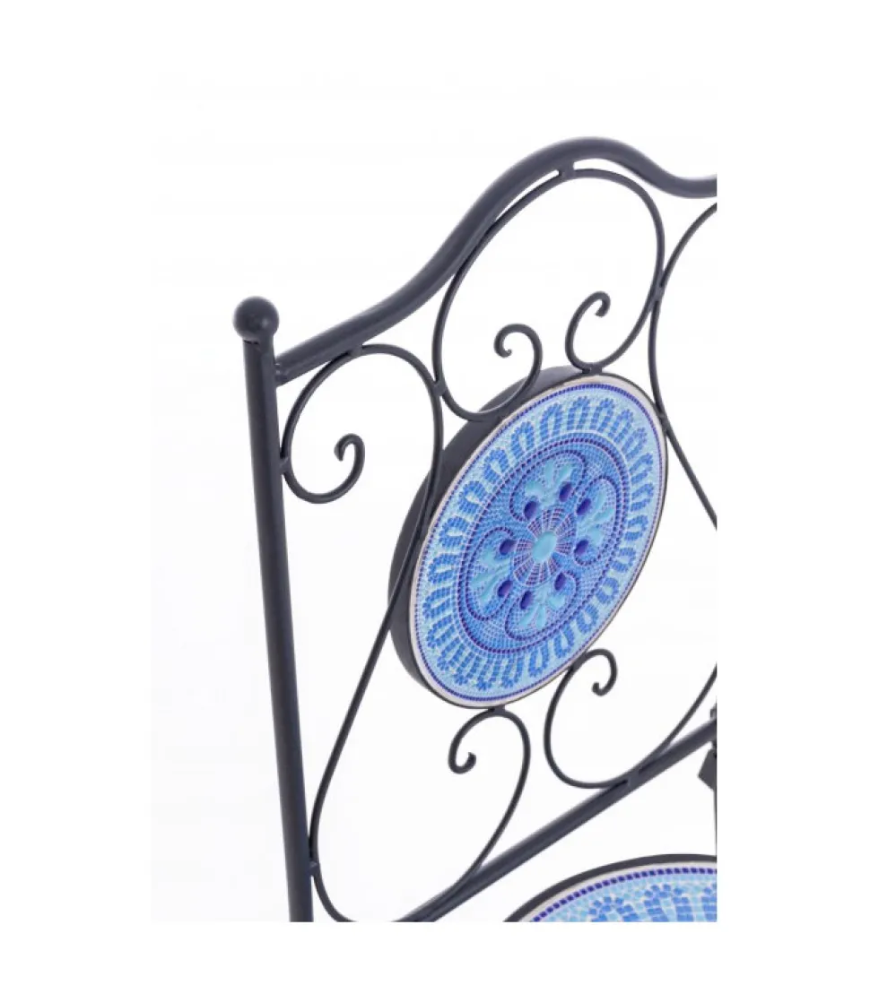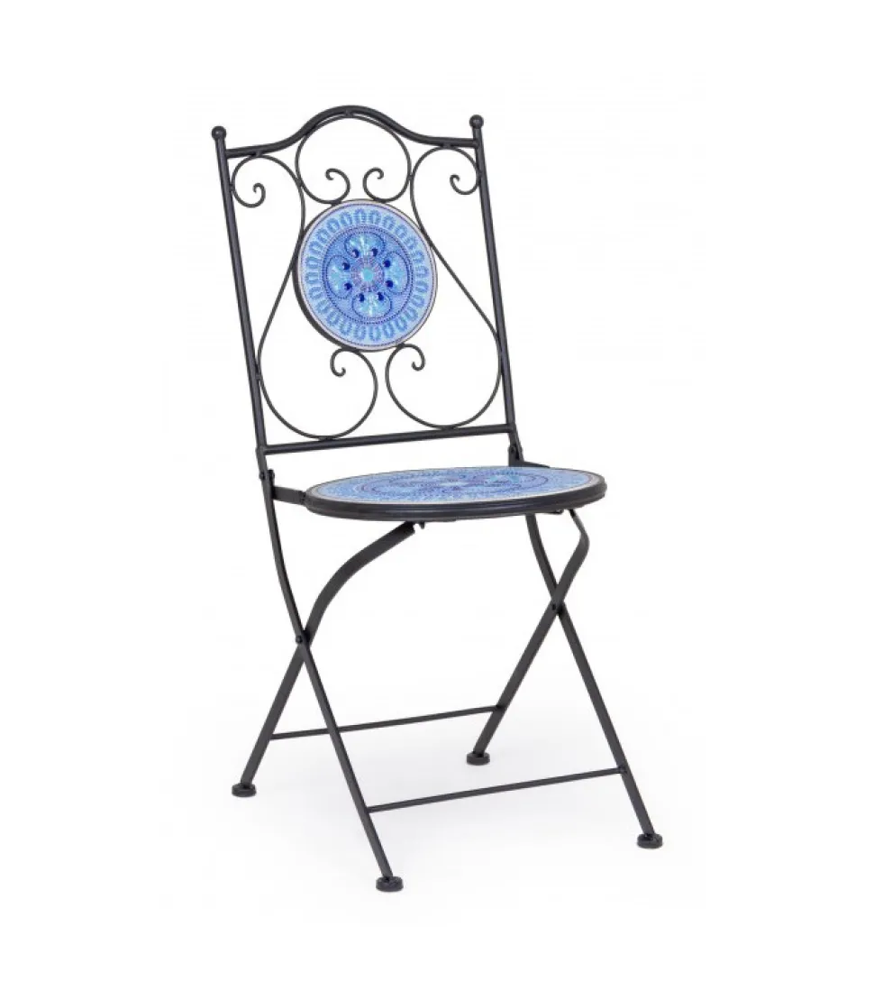 Struttura In Acciaio Trattato Per L’Esterno (E-Coating) E Verniciato A Polvere Epossidica. Seduta E Schienale Con Decoro In Ceramica. Pieghevole.