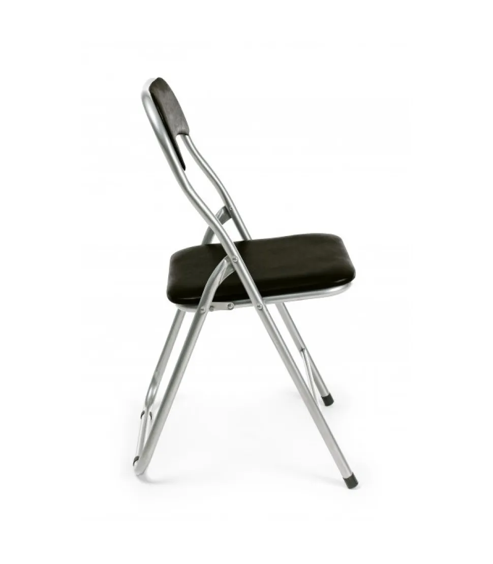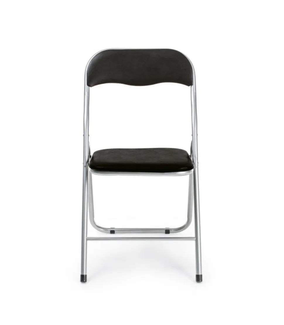 Sedia Piegh. Joy Nerostruttura In Acciaio Verniciato A Polvere Silver (Tubo O22Mm)- Seduta E Schienale Imbottiti E Rivestiti In Pvc Opaco- Seduta Pieghevole.Dimensioni:45(L) – 44(P) – 79(H) – 44,5(H. Seduta)