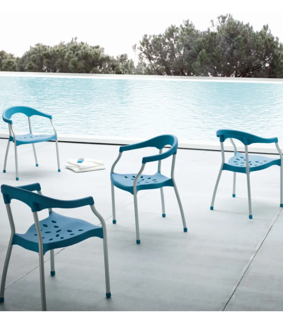 Sedia Serena Con Seduta E Schienale In Tecnopolimero (Disponibili 4 Colori), La Struttura A 4 Gambe E In Alluminio Anodizzato.