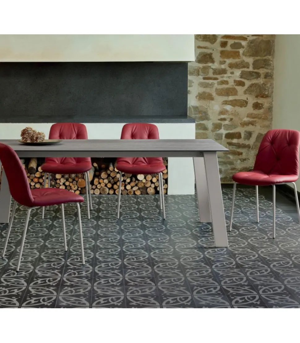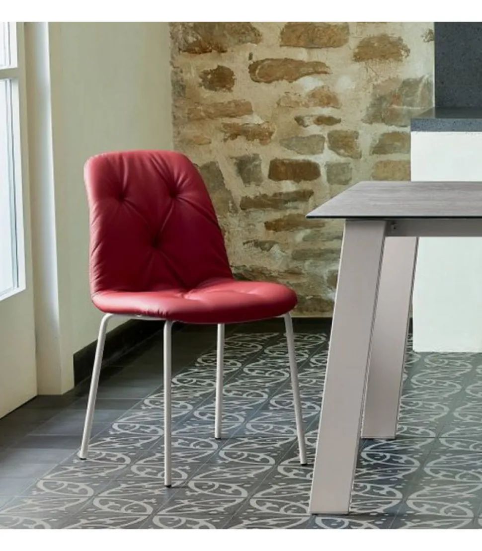 Sedia Con Gambe A Sezione Tonda, Conica E In Tondino Di Acciaio Laccato. Scocca Imbottita E Rivestita In Pelle Ecologica, Econabuk E Tessuto Penny.