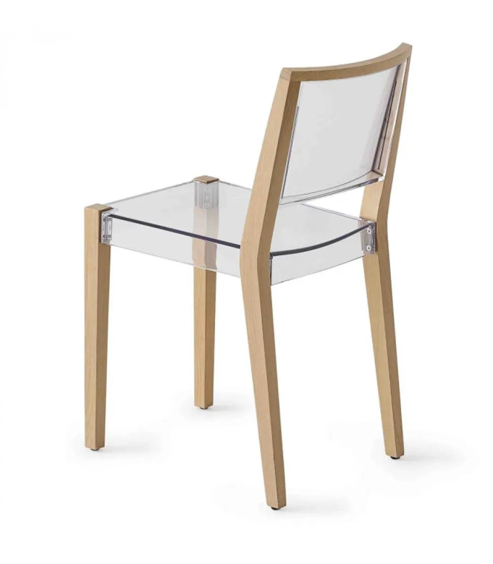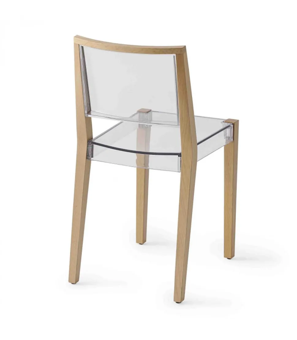 Sedia Together Con Seduta E Schienale In Tecnopolimero Trasparente O Rosso Trasparente. La Struttura A 4 Gambe E In Rovere.