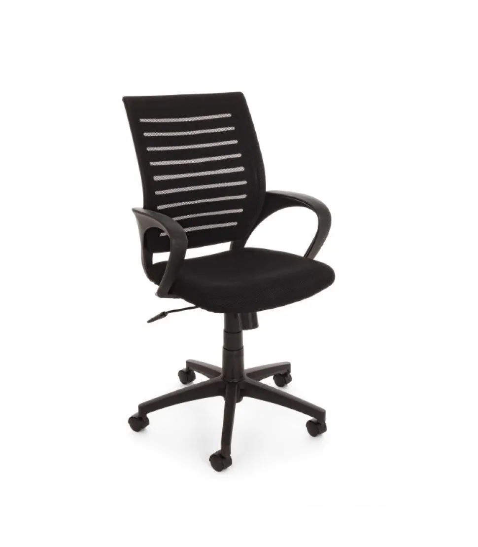 Sedia Uff. C-Br Marion Nerobase In Acciaio O60 Cm Verniciata A Polvere- Ruote In Plastica (Pu)- Seduta Imbottita In Schiuma E Rivestita In Tessuto A Rete Poliestere 100%- Schienale In Plastica (Pp) Rivestito In Tessuto A Rete Poliestere 100%- Altezza Regolabile- Da Assemblare.Dimensioni:55(L) – 61(P) – 93/103(H) – 46/56(H. Seduta) – 64/74(H. Braccioli)