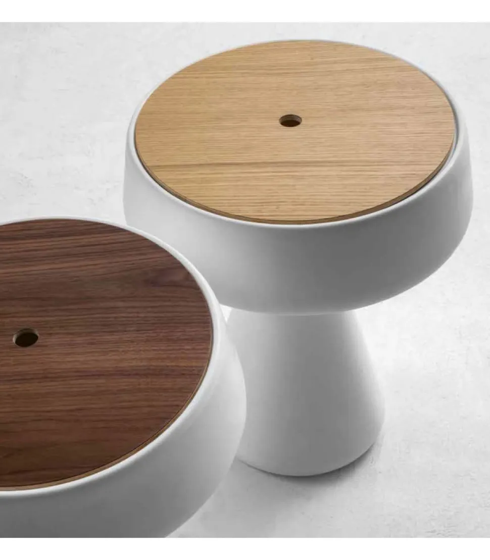 Un Servetto Dalla Forma Particolare, Che Si Apre Compatto Verso L’Alto, Nel Punto In Cui Il Polietilene Della Struttura Si Unisce Al Legno Del Top. Maki E Anche Un Contenitore.