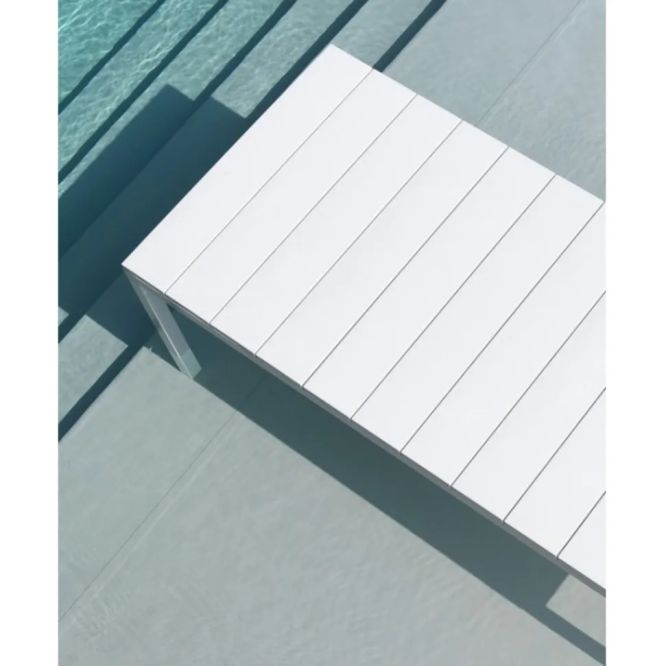 – Il Tavolo Rettangolare Rio Estensibile E Disponibile In Due Misure, 140 E 210 Cm. Ed E Dotato Di Allunga Laterale Che Rimane Sempre A Filo Gamba, In Questo Modo Non Intralciano Mai La Seduta. Il Piano E In Dureltop E La Struttura In Alluminio Verniciato, Con Piedini Regolabili.