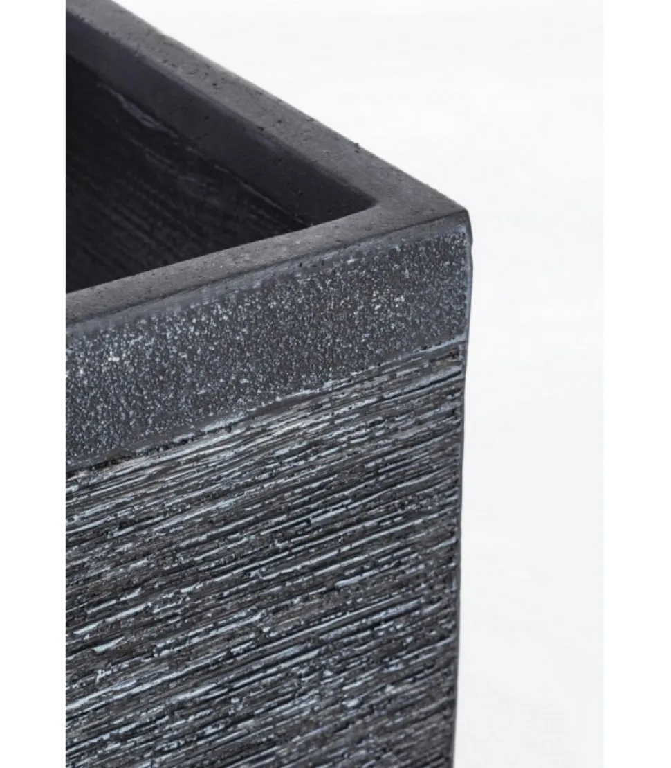 Set2 Vaso Graffiti Qu Nero Basso Fibra Di Vetro E Argilla Colorata. Foro E Tappo Sul Fondo. Da Esterno. – Dimensioni In Cm. 30 (L.) 30 (P.) 27.5 H/ 40 (L.) 40 (P.) 37.5 H