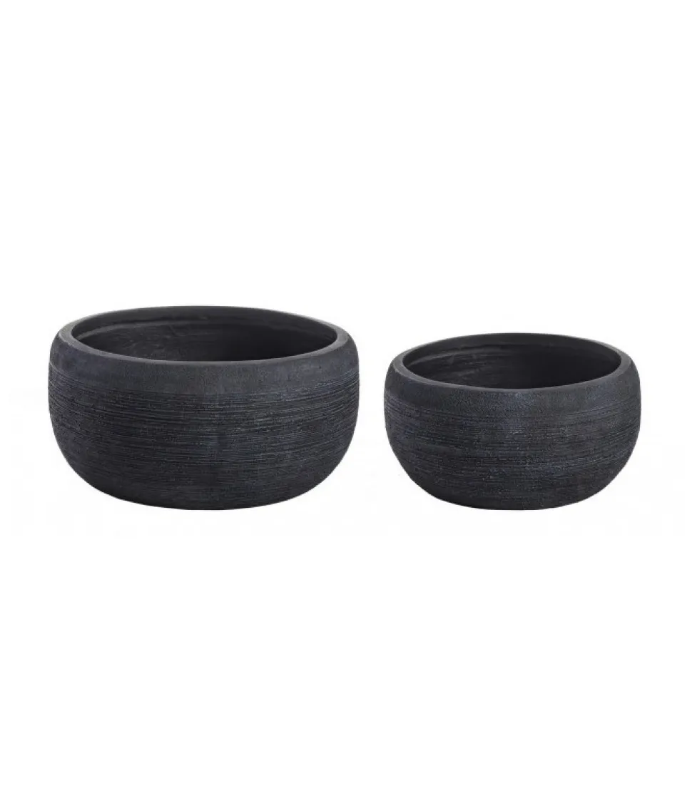 Set2 Vaso Graffiti Ciotola Nero Fibra Di Vetro E Argilla Colorata. Foro E Tappo Sul Fondo. Da Esterno. – Dimensioni In Cm. O42.5 (L.) 21 H/ O53.5 – 25.5 H