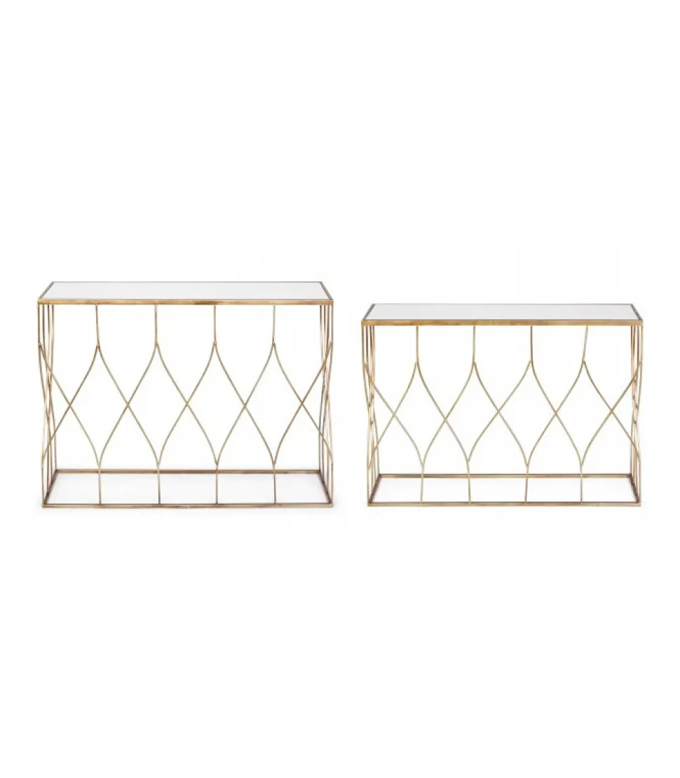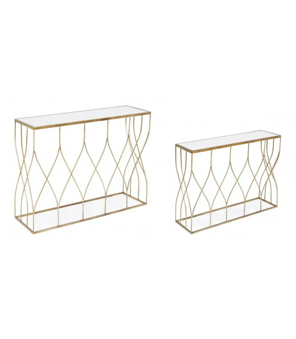 Set2 Consolle Elenorstruttura In Acciaio, Verniciato A Polvere Epossidica- Piano In Vetro.Dimensioni:96.5(L) – 28(P) – 71(H); 104(L) – 33(P) – 79(H)
