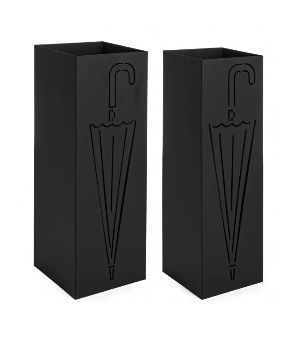 Set2 P.Ombrello Drizzle Nero Z01Acciaio Verniciato A Polvere Epossidica.Dimensioni:15.5X15.5X49(H); 18X18X49(H)