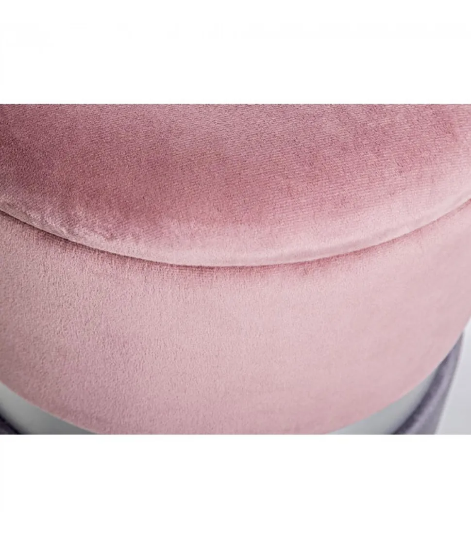 Set2 Pouf Cont.Polina Rosa-Grigiostruttura In Mdf E Compensato- Rivestimento In Poliestere Effetto Velluto- Anello Centrale In Acciaio Verniciato Color Argento- Densita’ Imbottitura 30Kg/M3.Dimensioni:O31.5(L) – 38(H); O36(L) – 44(H)