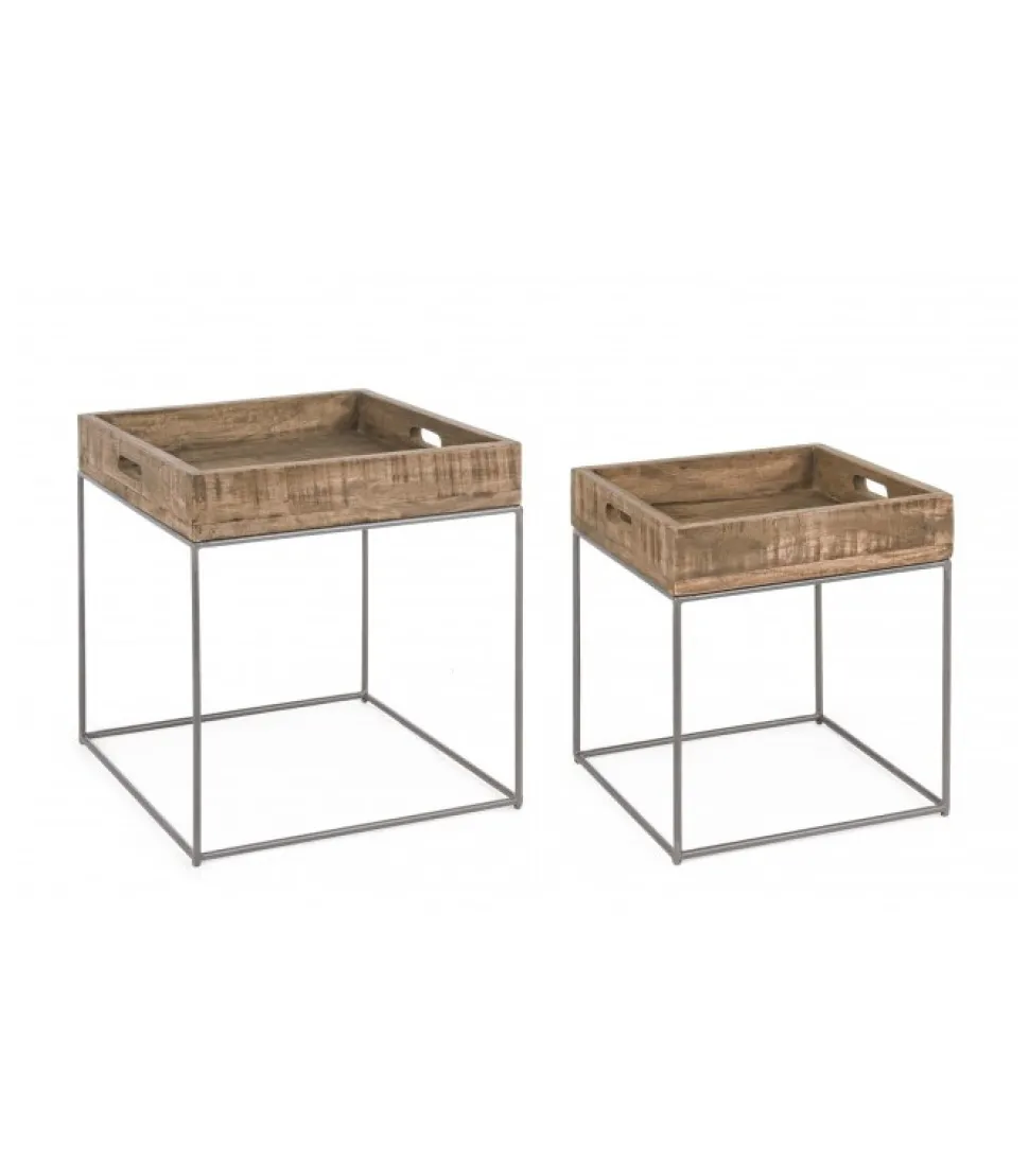 Set2 Tavolino Narvik Qustruttura In Acciaio Verniciata A Polvere Epossidica, Piano In Legno Di Mango Con Finitura A Base D’Acqua.Dimensioni:34(L) – 37(P) – 42(H); 47(L) – 47(P) – 50(H)
