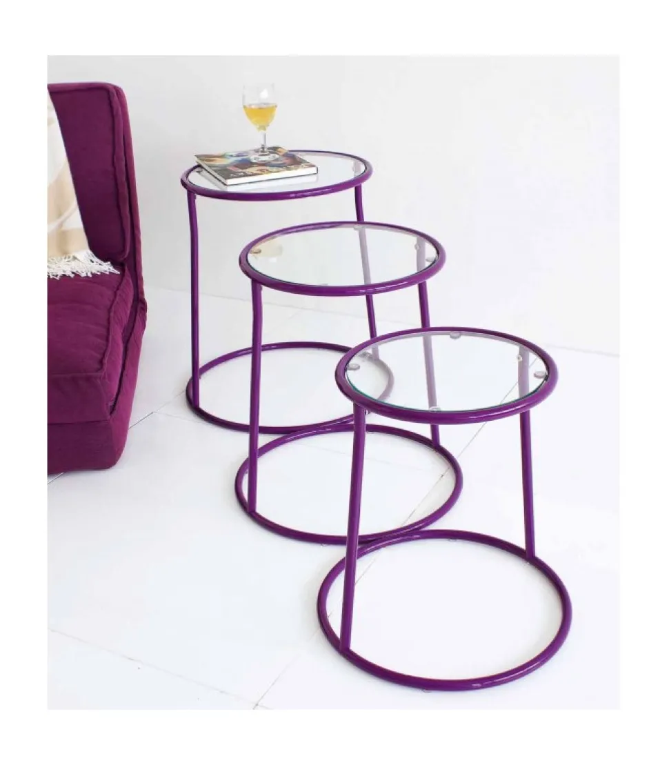 Set3 Tavolino Magia Viola Acciaio-Vetro