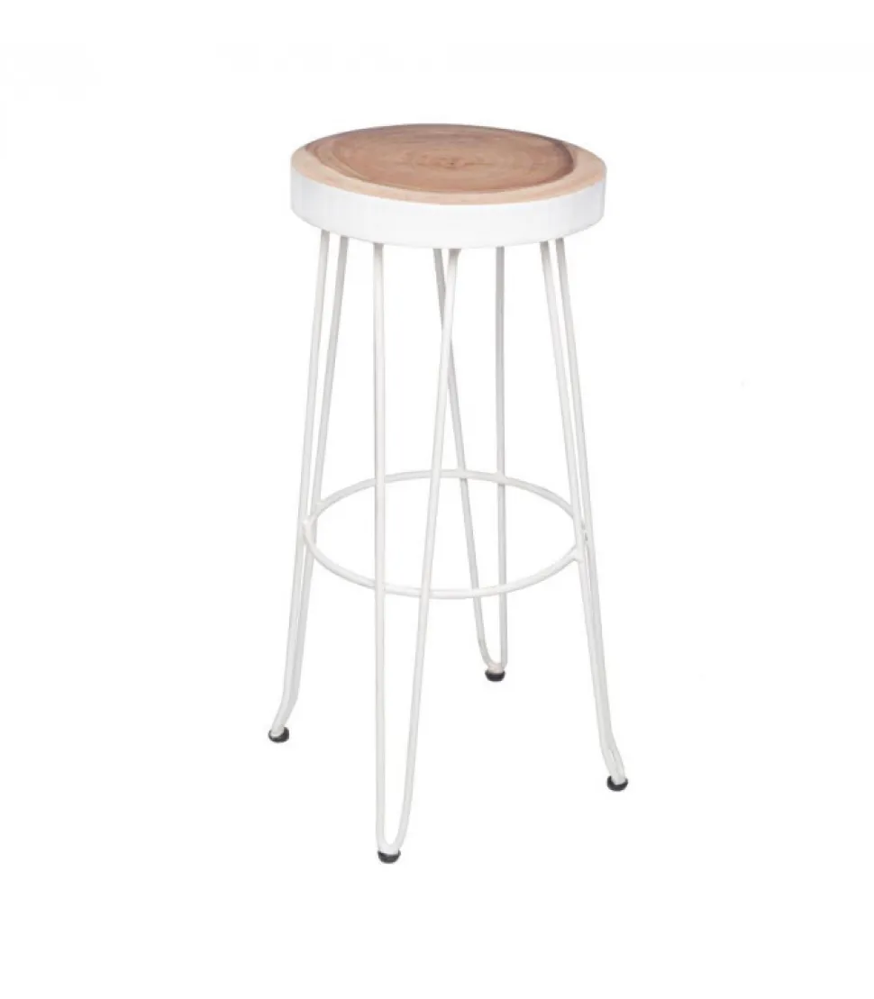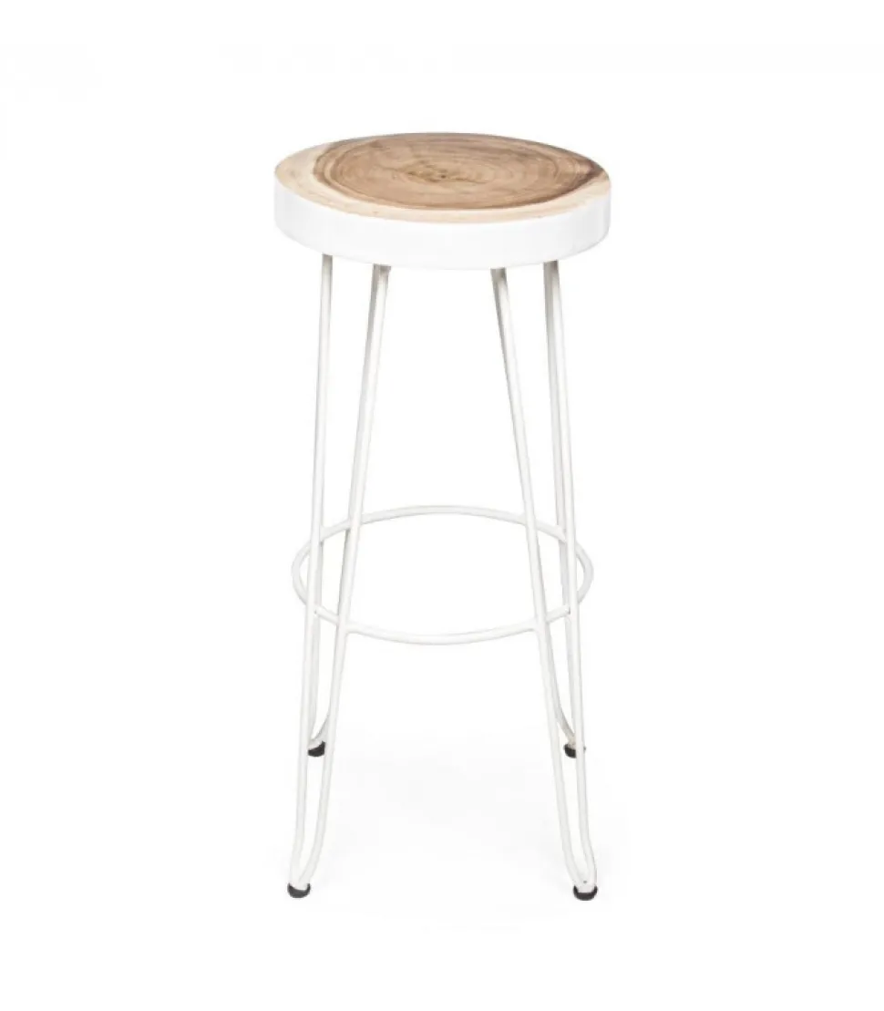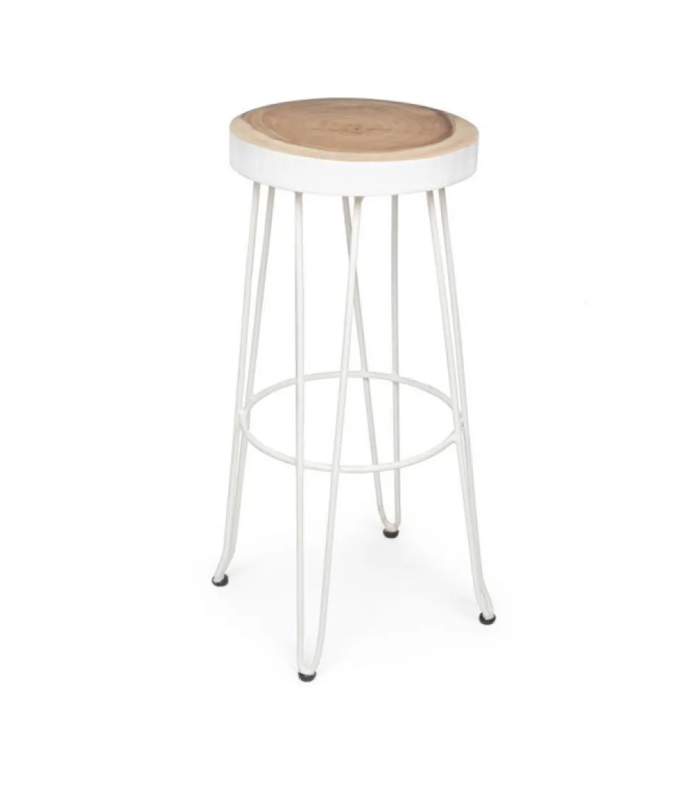Sgabello Bar Rakel Biancoseduta In Legno Mungur (Tronco), Gambe In Acciaio Verniciato A Polvere Epossidica.Dimensioni:Seduta O33 – Gambe O44 – 74H