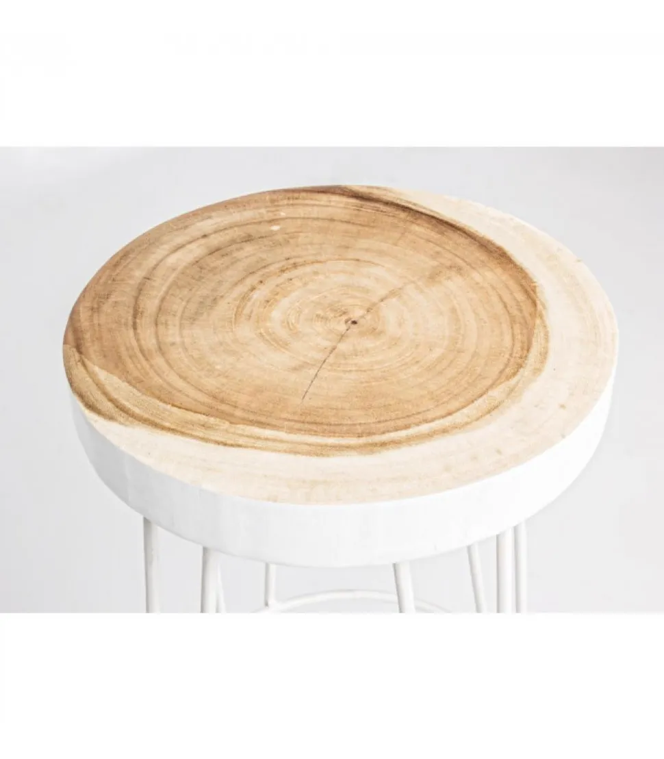 Sgabello Bar Rakel Bianco Seduta In Legno Mungur (Tronco), Gambe In Acciaio Verniciato