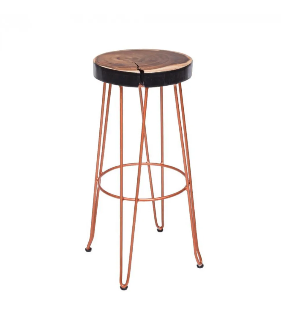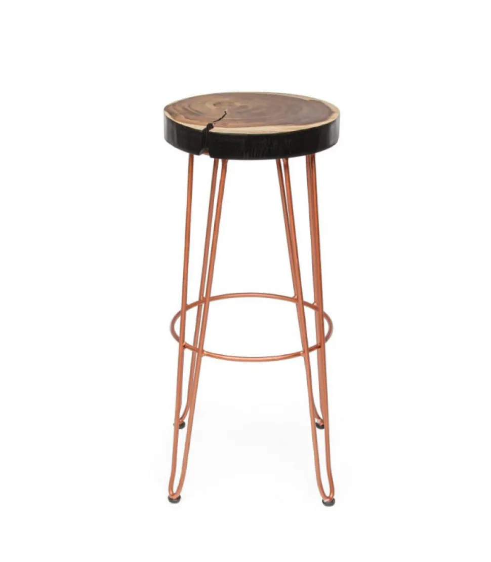 Sgabello Bar Rakel Rame Seduta In Legno Mungur (Tronco), Gambe In Acciaio Verniciato