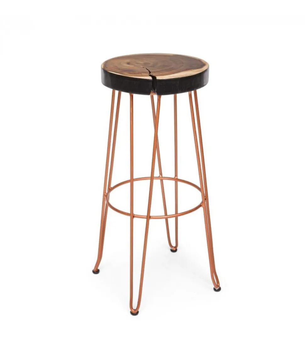 Sgabello Bar Rakel Rameseduta In Legno Mungur (Tronco), Gambe In Acciaio Verniciato A Polvere Epossidica.Dimensioni:Seduta O33 – Gambe O44 – 74H