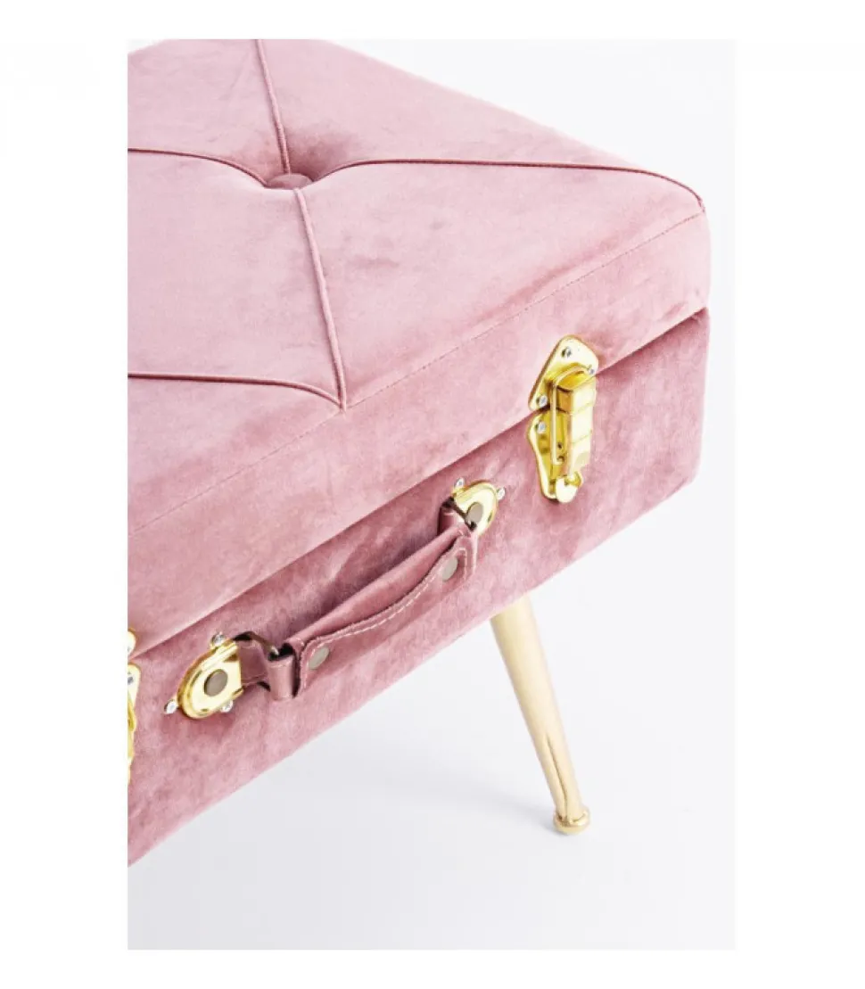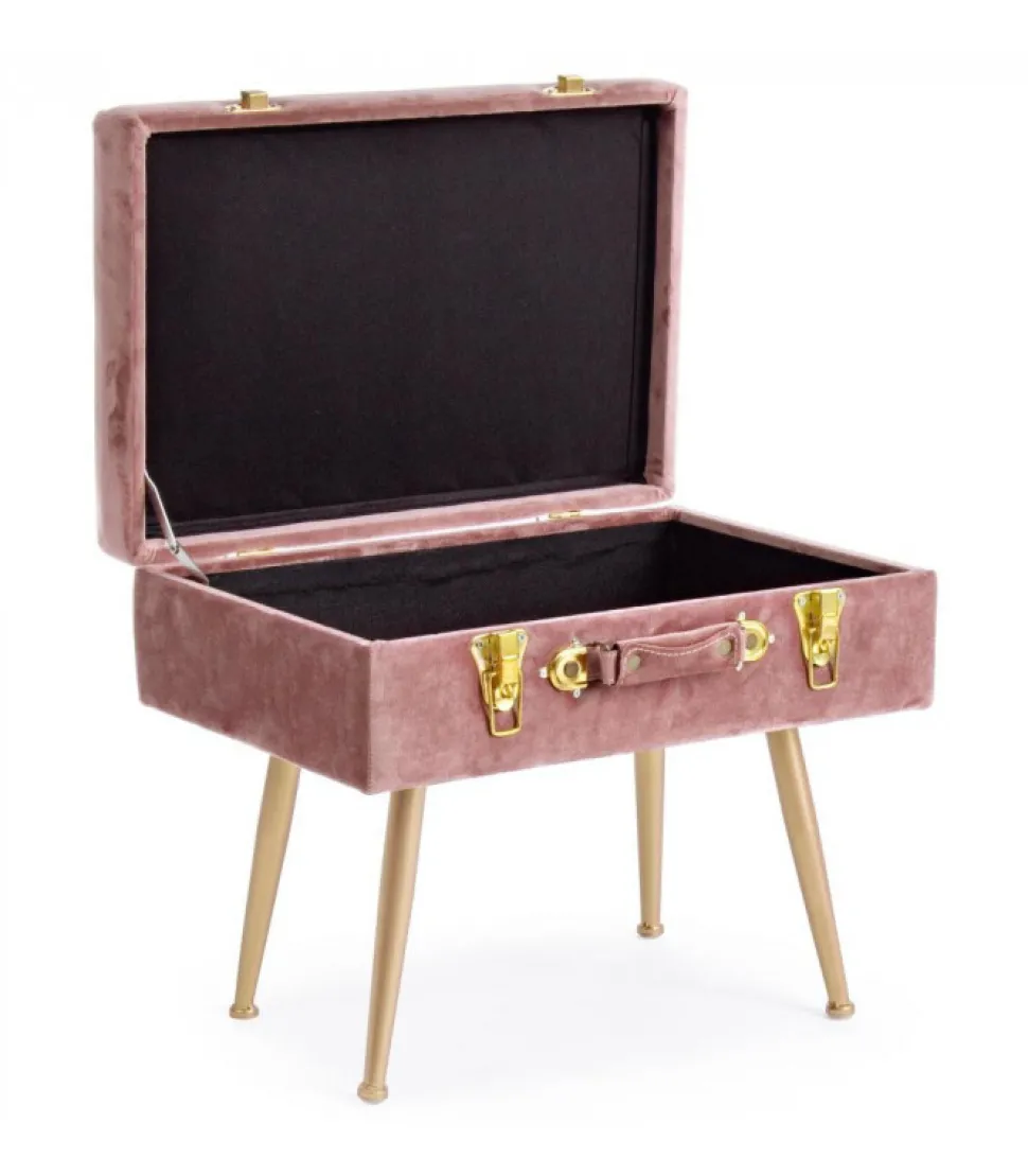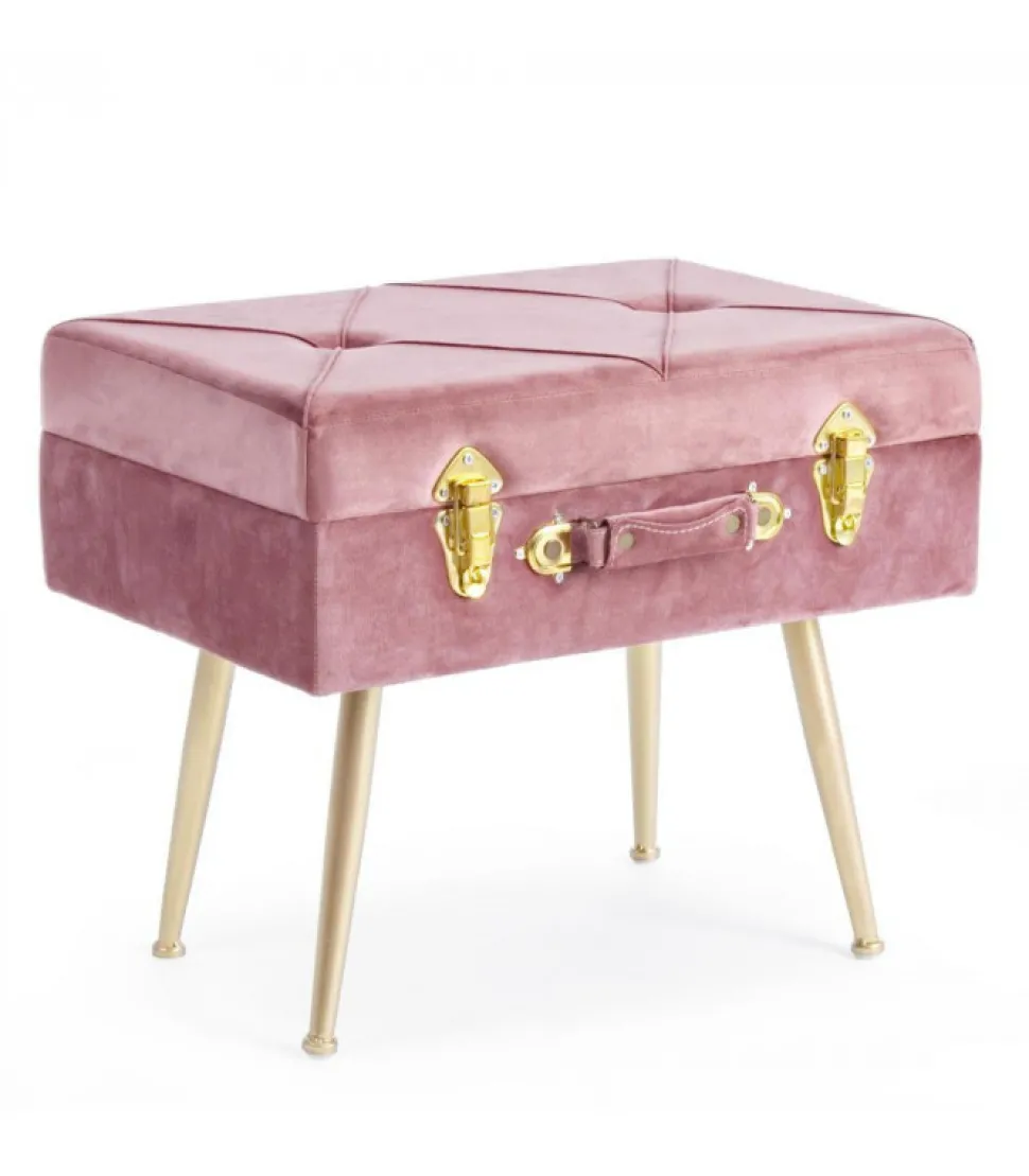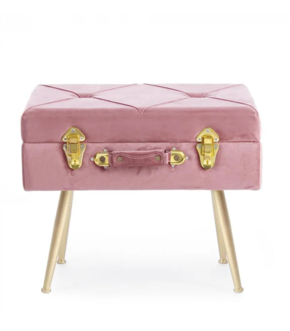 Sgabello Contenitore Polina Rosa Ant. Struttura In Mdf. Rivestimento In Poliestere Effetto Velluto. Densita’ Imbottitura 30Kg/M3. Gambe Da Assemblare In Acciaio Verniciato Color Oro.