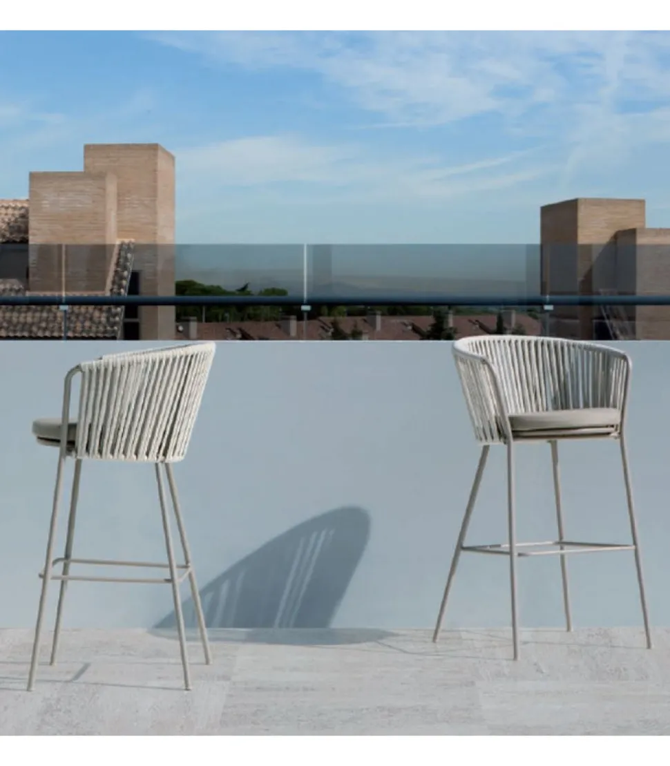 Daisy Rope Sg, Con Struttura In Metallo A 4 Gambe Disponibile In Molte Finiture Diverse, Lo Schienale E In Corda, Ed E Accessoriabile Di Cuscini Sia Per La Seduta Che Per Lo Schienale.