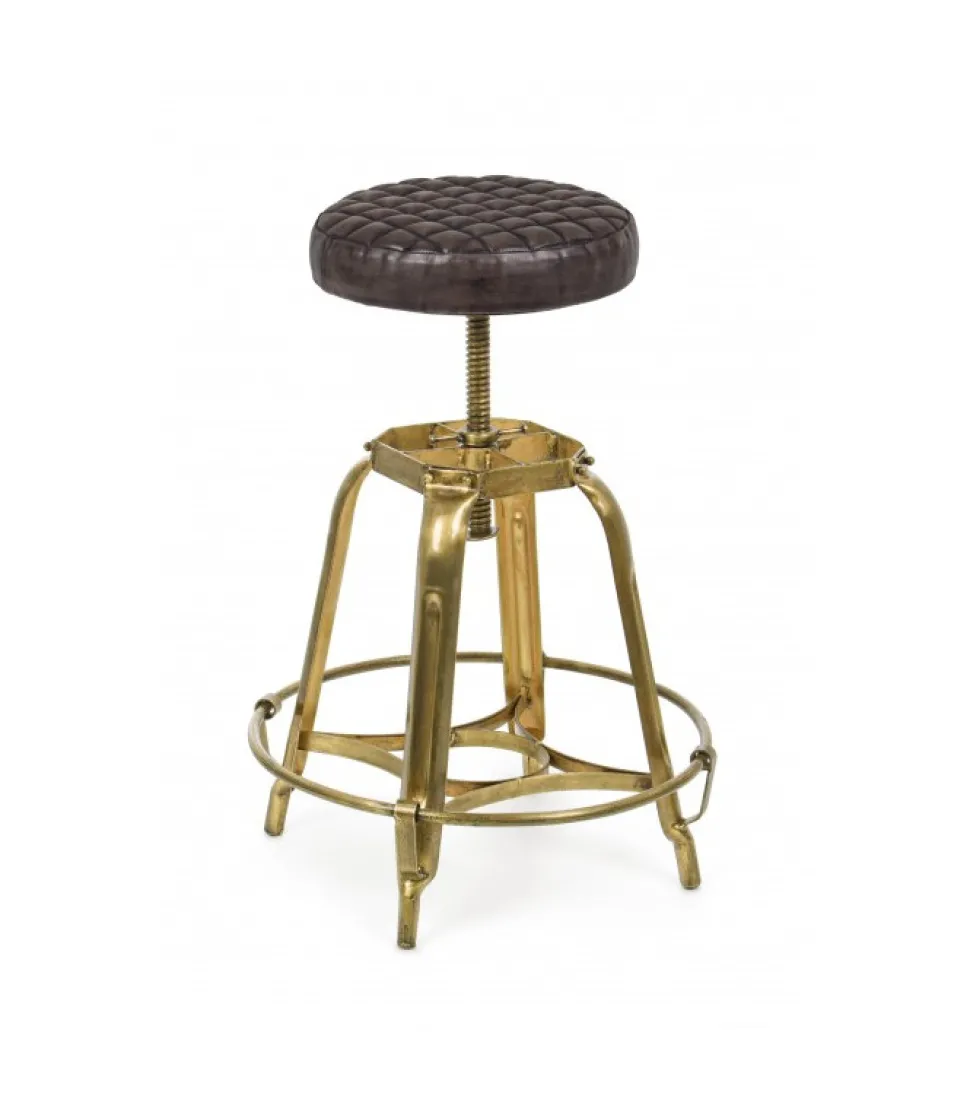 Sgabello Mendez H71Struttura In Acciaio Con Finitura Oro, Rivestimento Seduta In Vera Pella- Altezza Regolabile.Dimensioni:O46.5(L) – 52/71(H)
