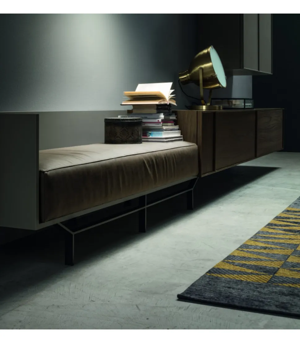 Il Divanetto E Composto Da Una Scocca Di 18Mm Disponibile In Varie Finiture, Composto Da Un Modulo Con Anta, Staffe ( Disponibili In Tre Colorazioni Metalizzate)E Un Cuscino Imbottito Con Ecopelle Buxter Disponibile In 6 Colorazioni)