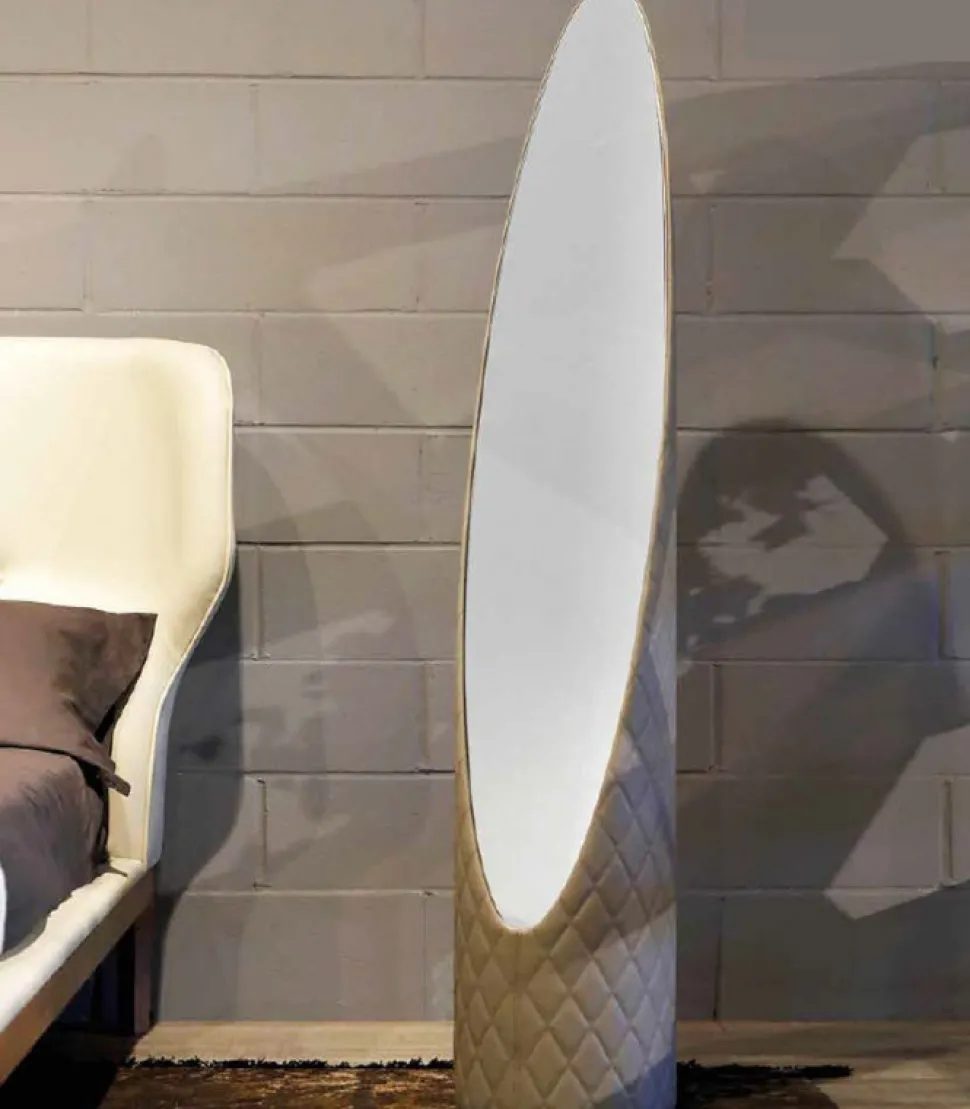 Kolonaky E Un’Ellissi Obliqua, Poggiata Su Di Una Base Leggera E Dal Fascino Contemporaneo, Che Puo Essere Rivestita Con Le Nostre Migliori Pelli Ed Eco-Pelli. Uno Specchio Per Far Valere L’Estro Creativo Di Ogni Stanza.