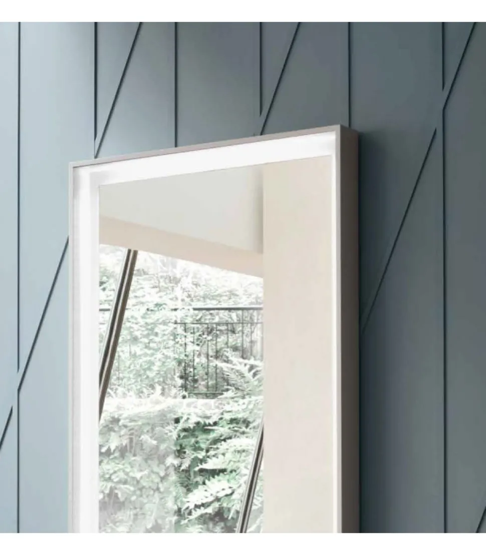 La Specchiera Ha Una Cornice Luminosa Molto Scenografica: Puo Essere Installata In Verticale Per Una Visione A Figura Intera Oppure In Orizzontale Per Dare Piu Profondita Allo Spazio.