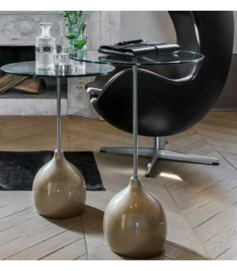 Adachi Riprende Le Forme Di Un Elegante Alambicco, Dallo Stelo Lungo E Snello Che Si Apre In Un Top In Vetro Temperato. A Permettere La Creazione Di Una Forma Cosi Particolare, Un Materiale Duttile E Prestante Come L’Agglomerato Di Marmo.